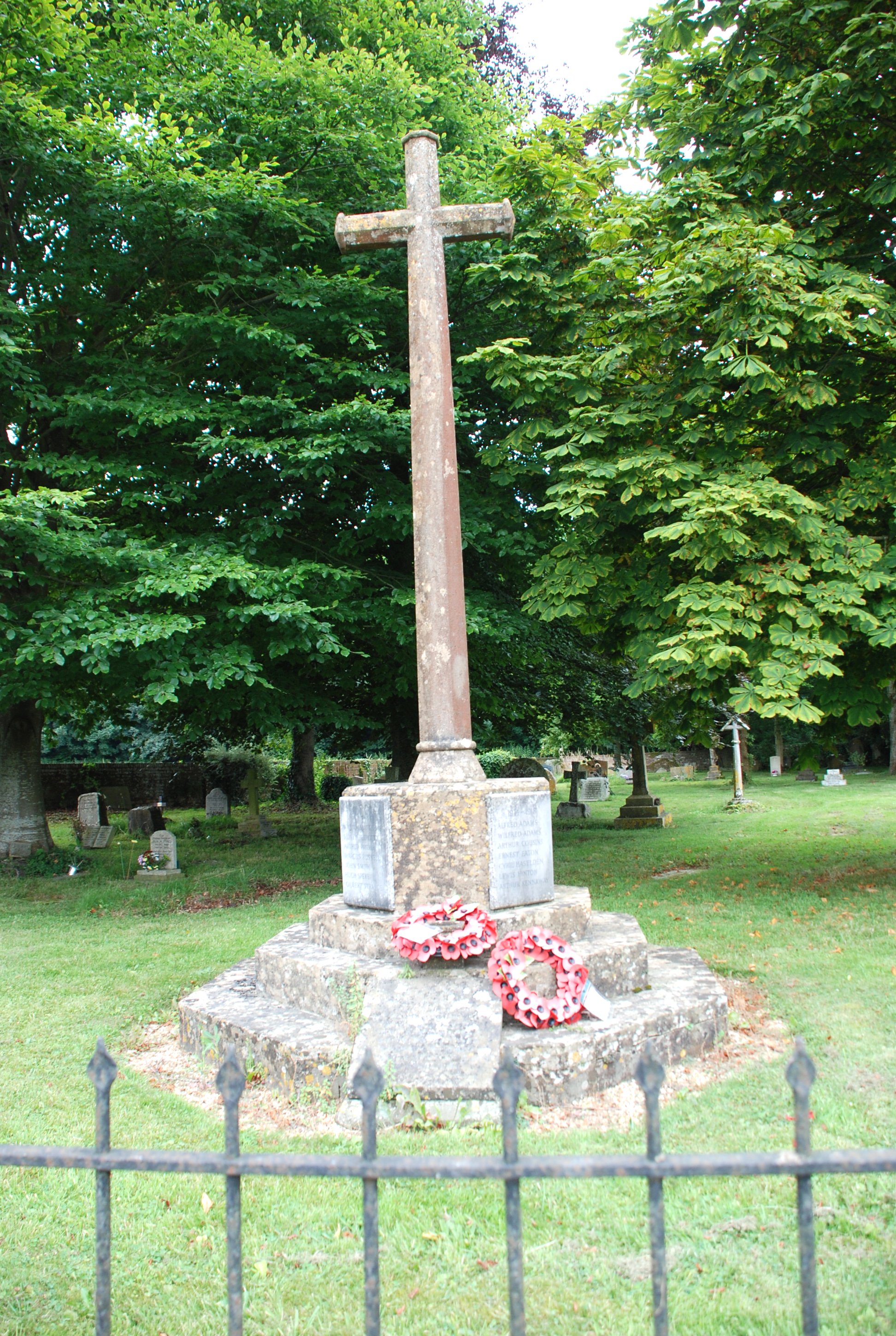 Stone cross on octagonal plinth in St John the Baptist Churchyard.