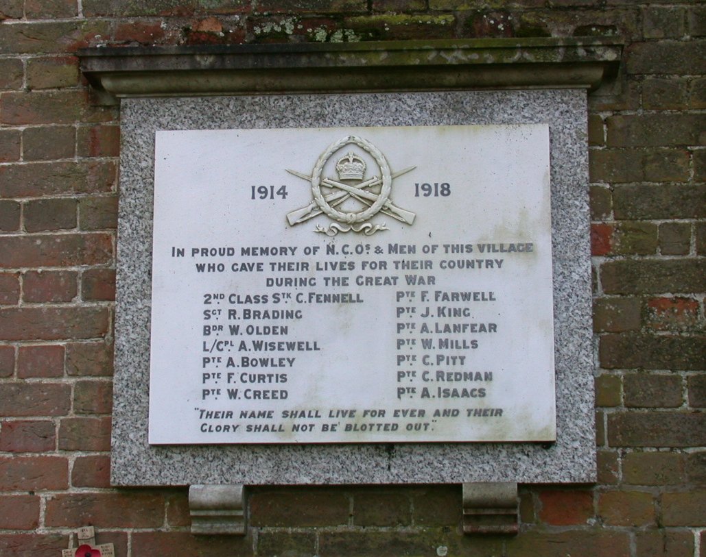 Stone plaque on marble on wall on outside of St Mary's church. (Nothing in church.)