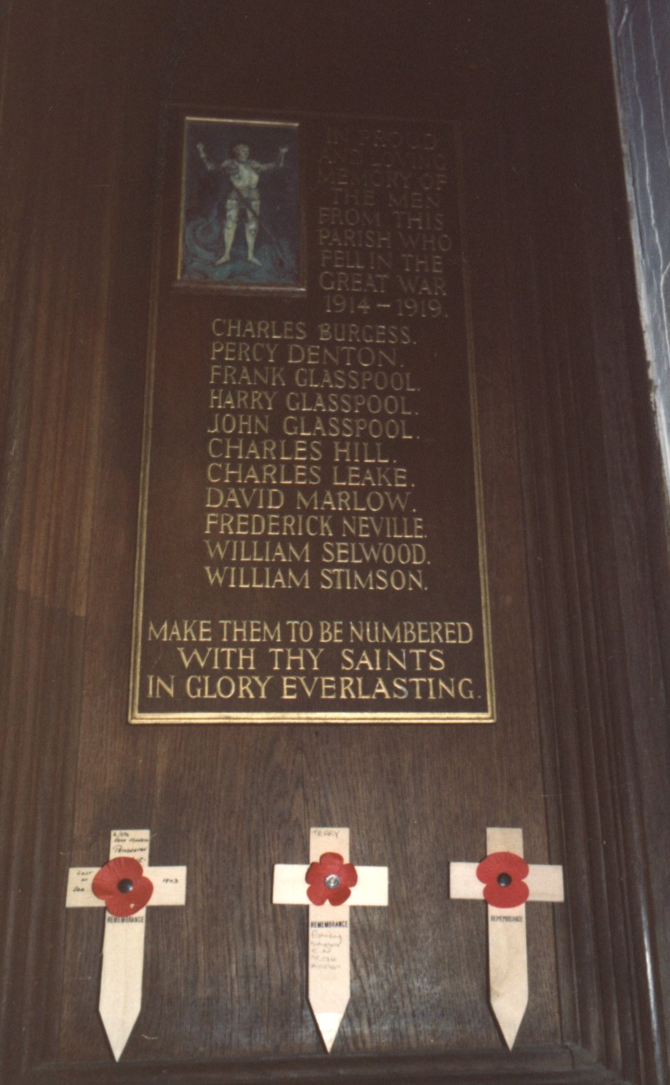 Wooden plaque on wall in Holy Trinity & St Andrew's Church.
