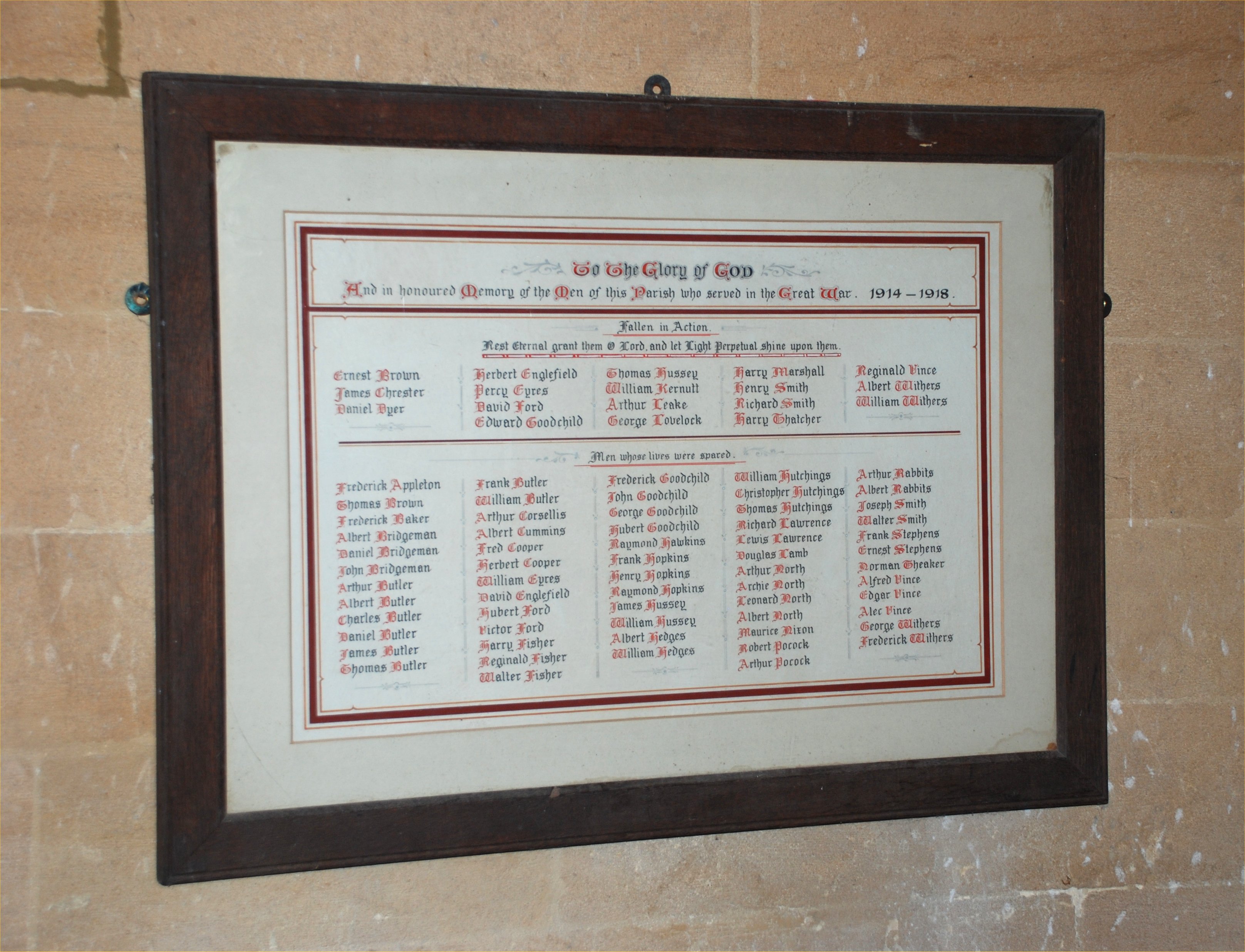 And in honoured Memory of the men of this Parish who served in the Great War. 1914-1918.