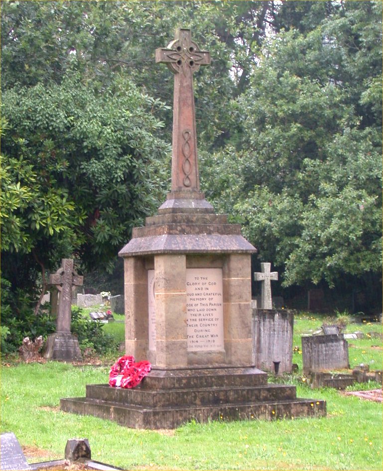 Stone cross in St Leonards churchyard, names on panels on base plinth.