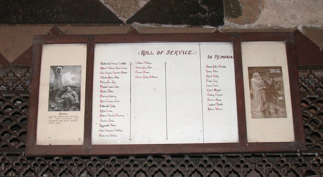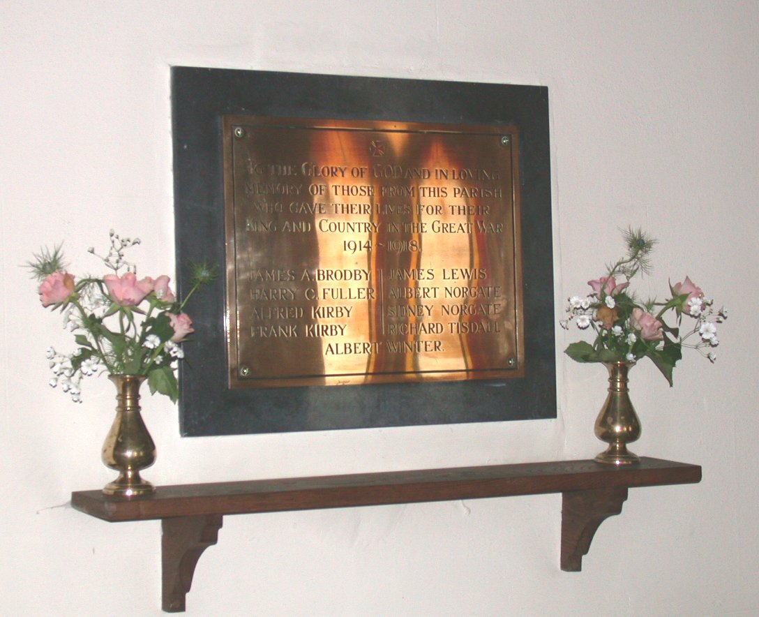 Brass plaque on wall in All Saints Church.