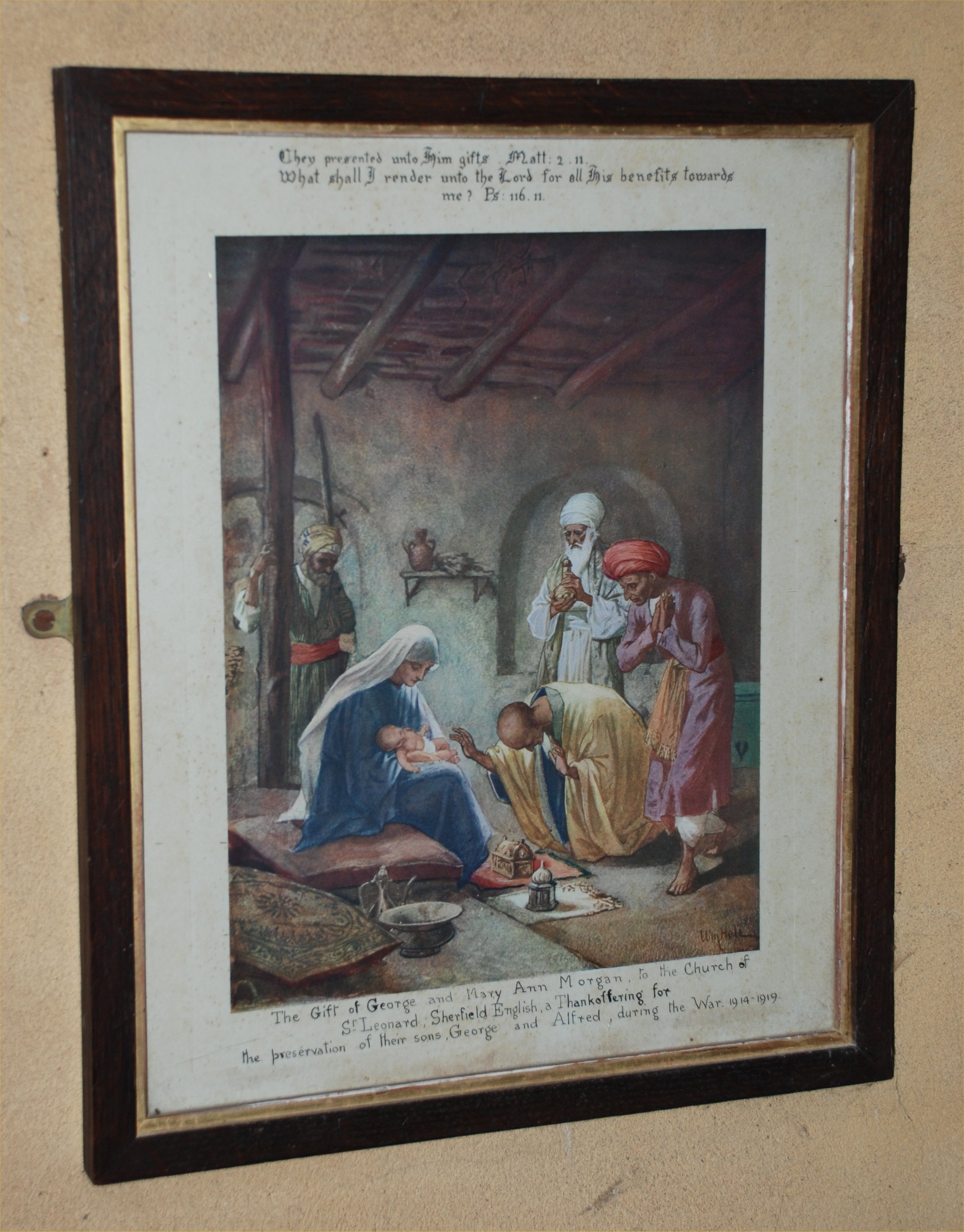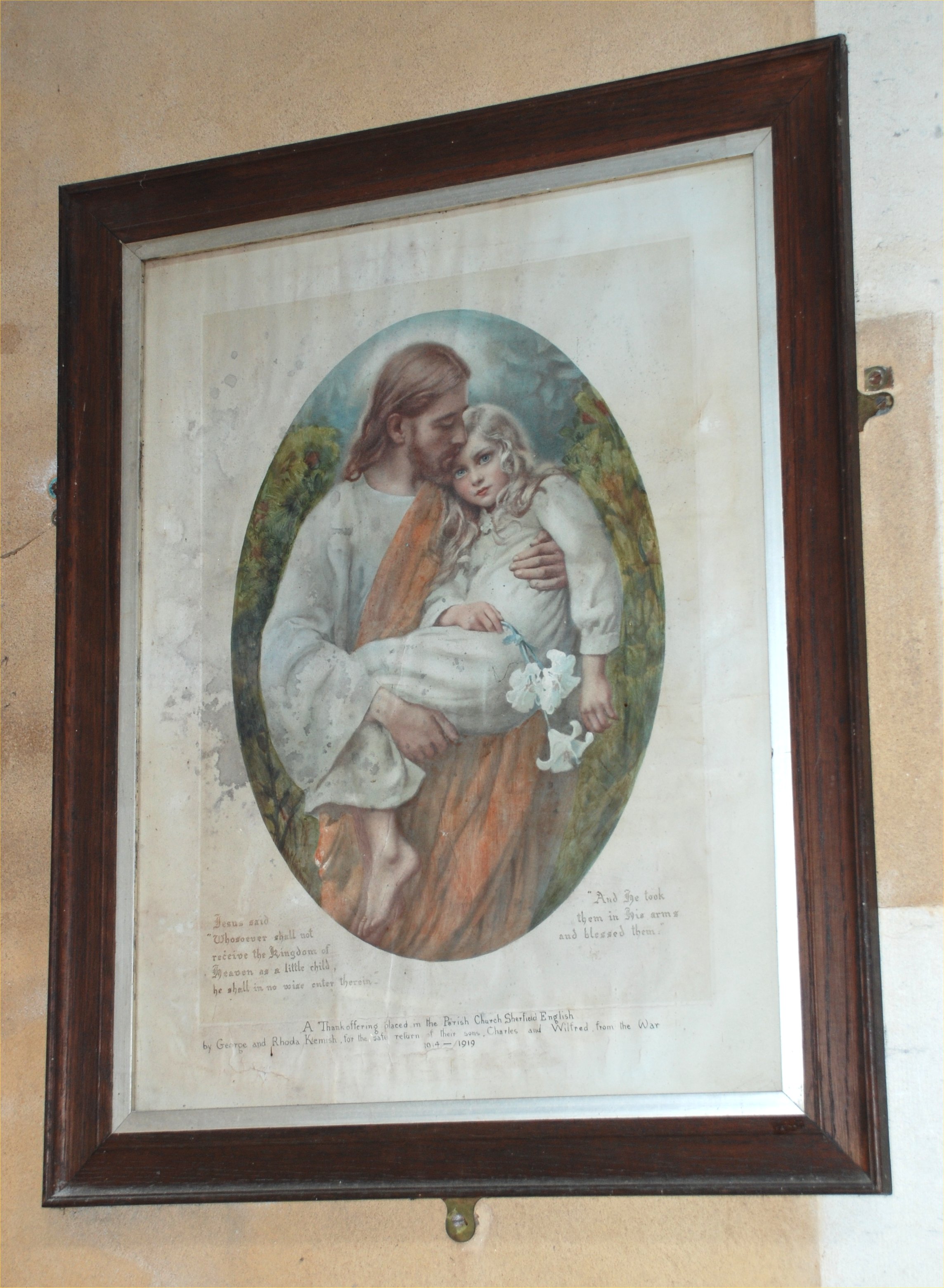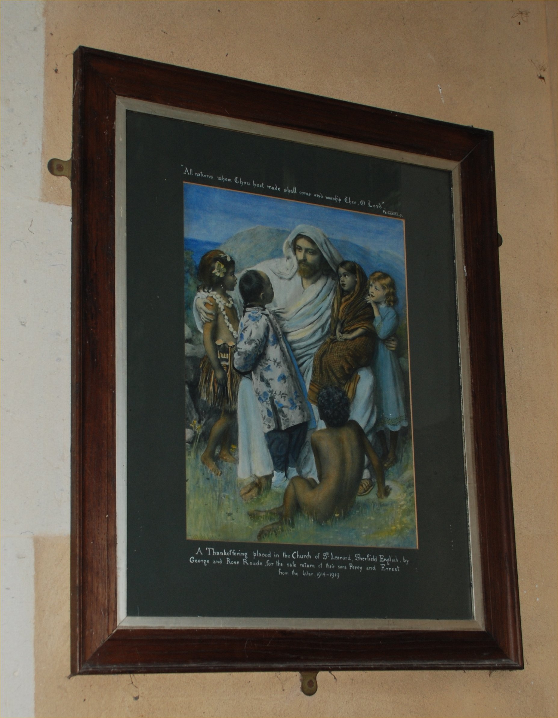 This picture is placed in St Leonard's Church, Sherfield, by grateful parents, for the returen of their sons from the War.