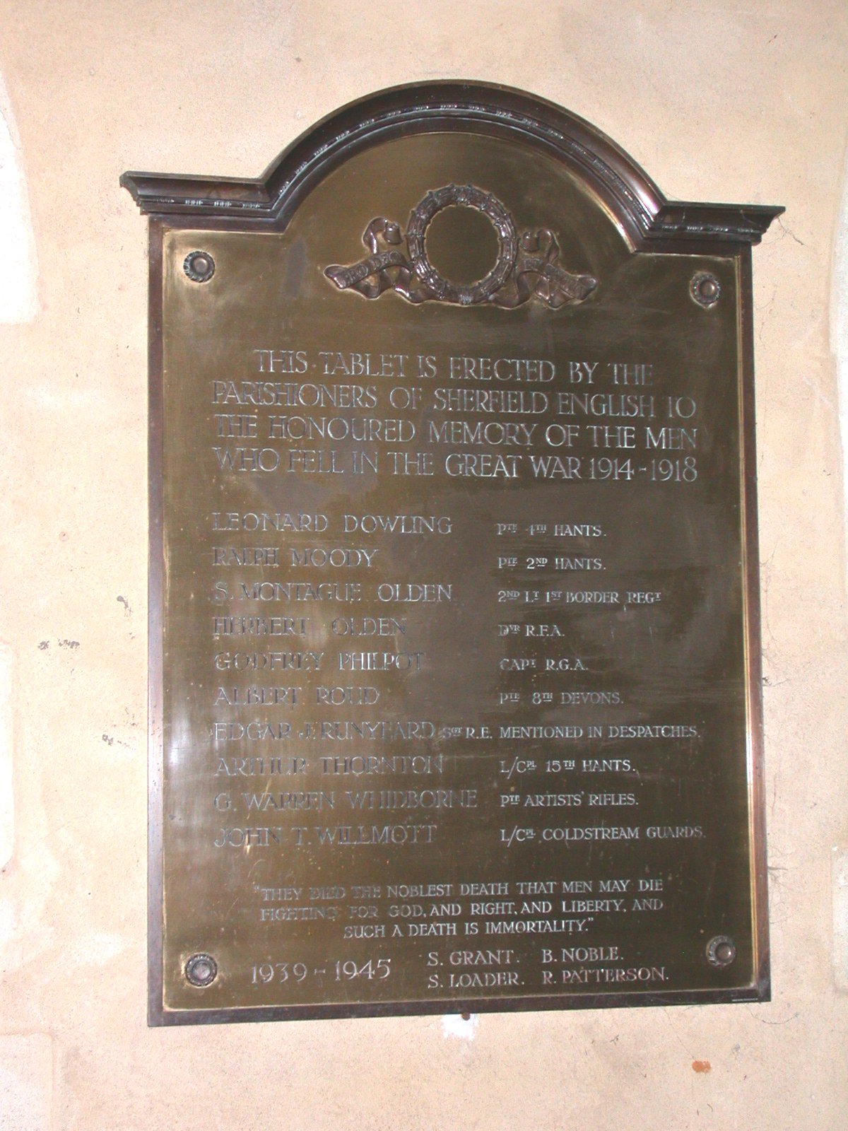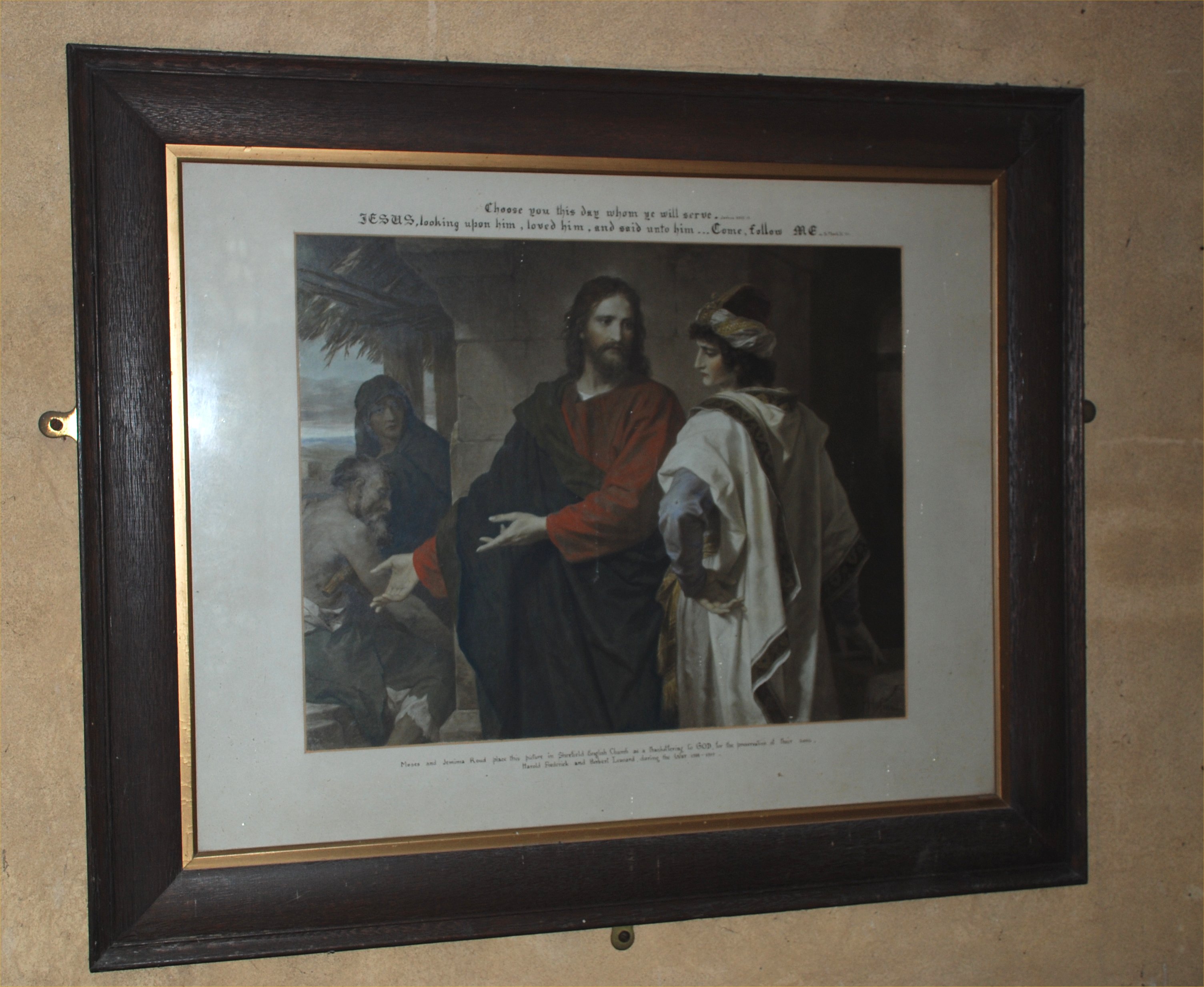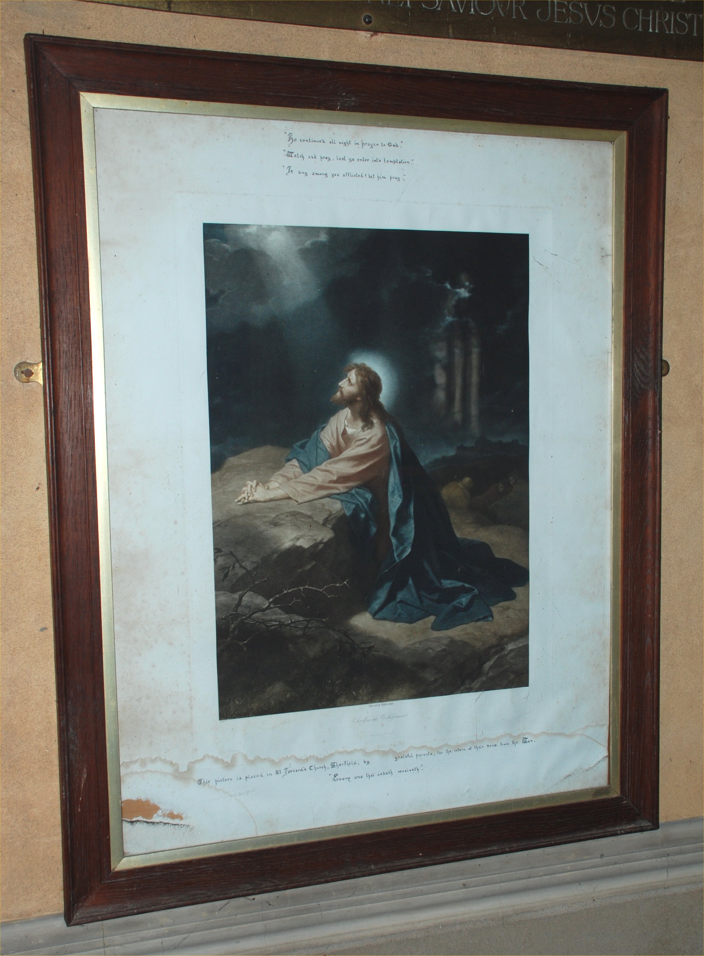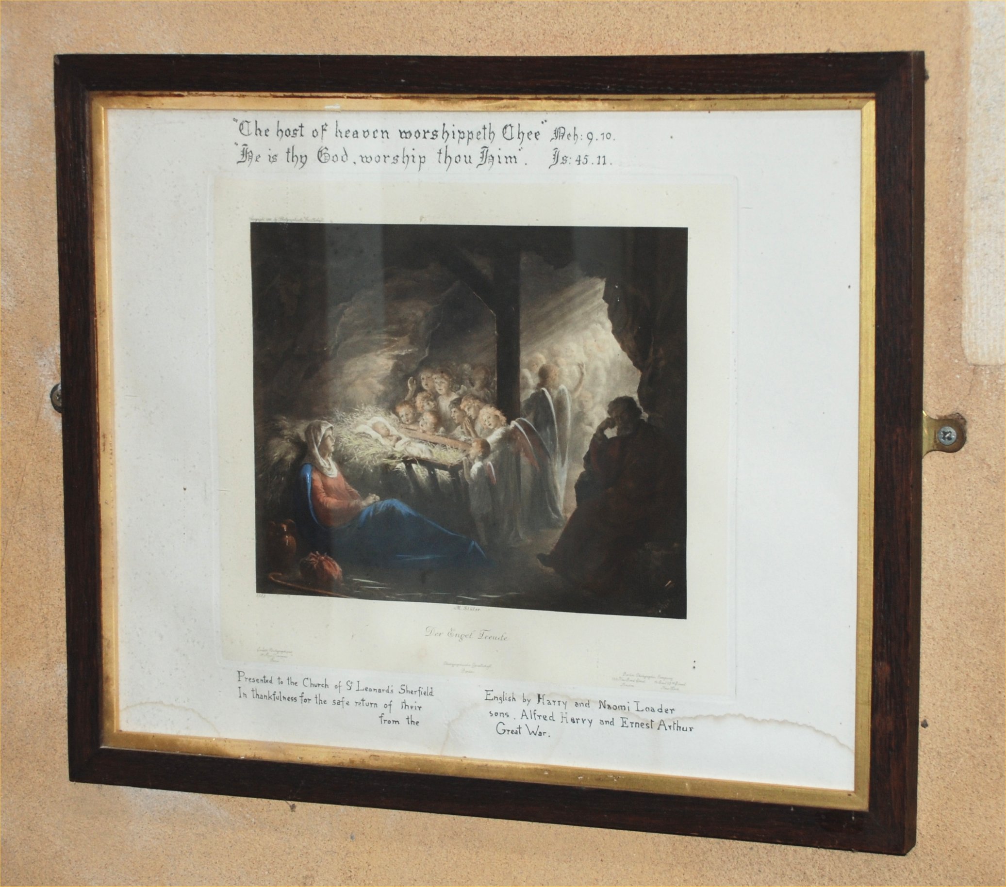 This picture is placed in St Leonard's Church, Sherfield, by grateful parents, for the returen of their sons from the War.