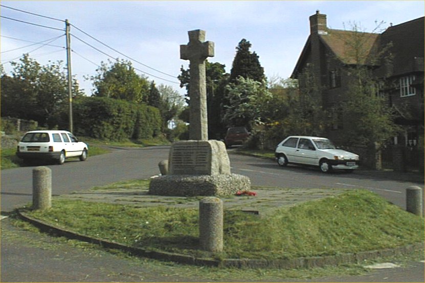 Stone cross on road junction.