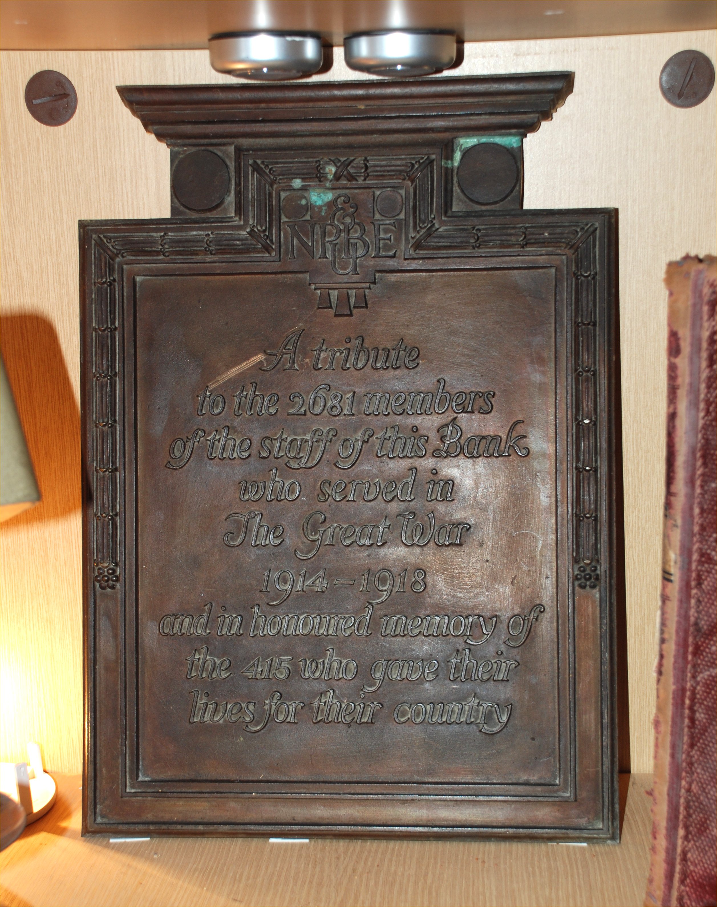 & NPBE U A Tribute to the 2681 members of the staff of this Bank who served in The Great War 1914-1918 and in honoured memory of the 415 who gave their lives for their country