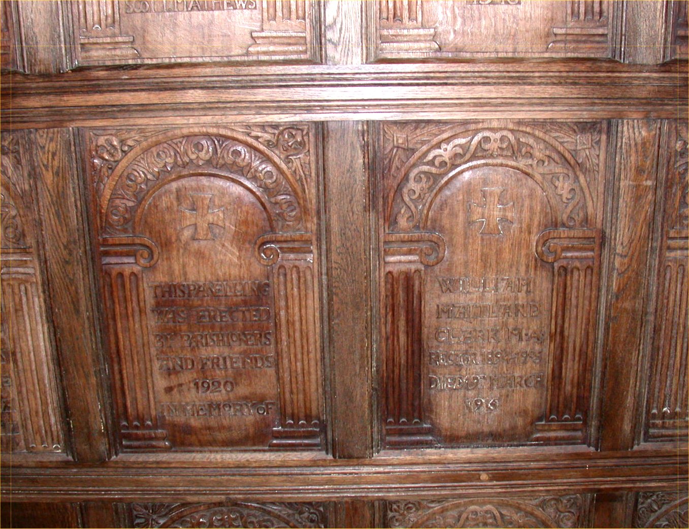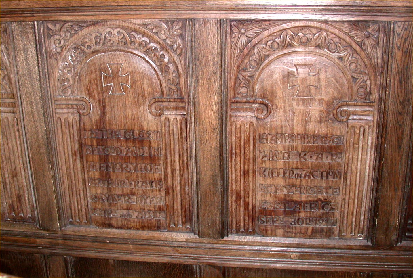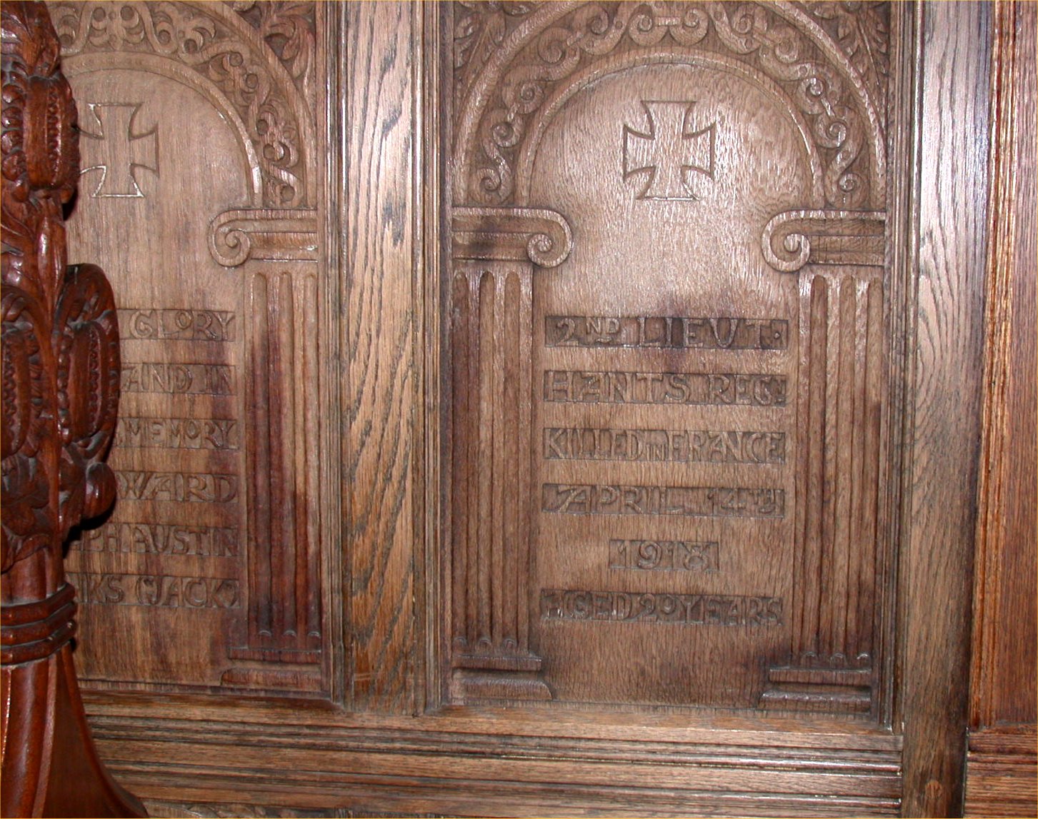 Names on the panels of the screen on wall to left of altar.