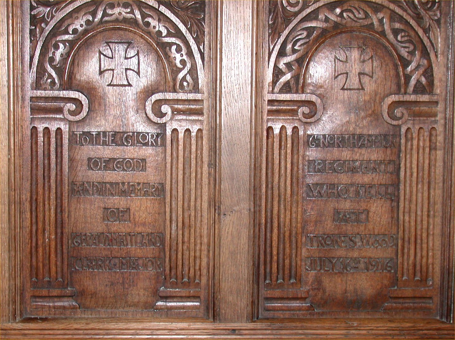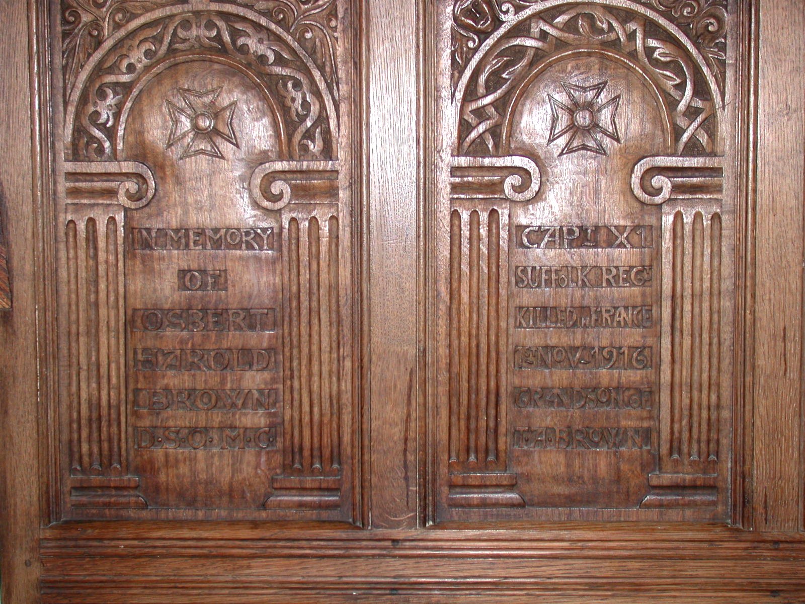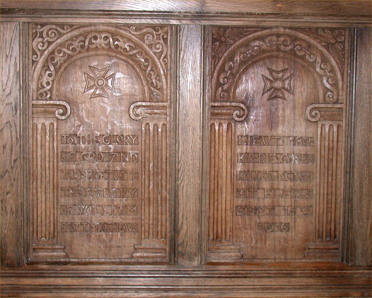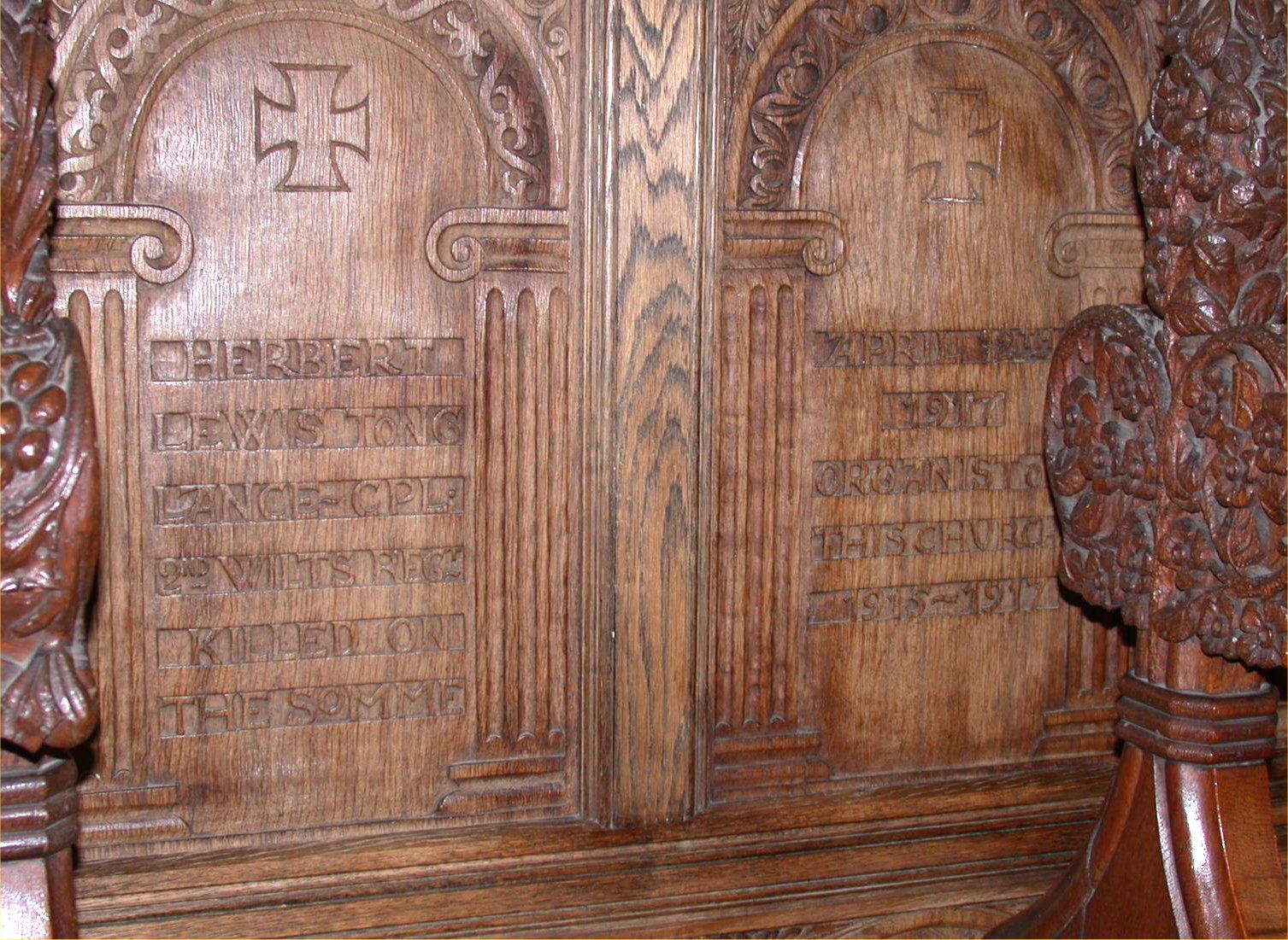 Names on the panels of the screen on wall to left of altar.