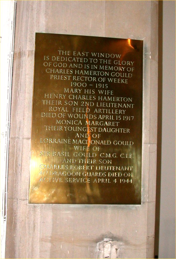 In Lady Chapel brass plaque on wall.