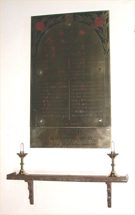Brass plaque on wall under Great War memorial in St Michael's Church.