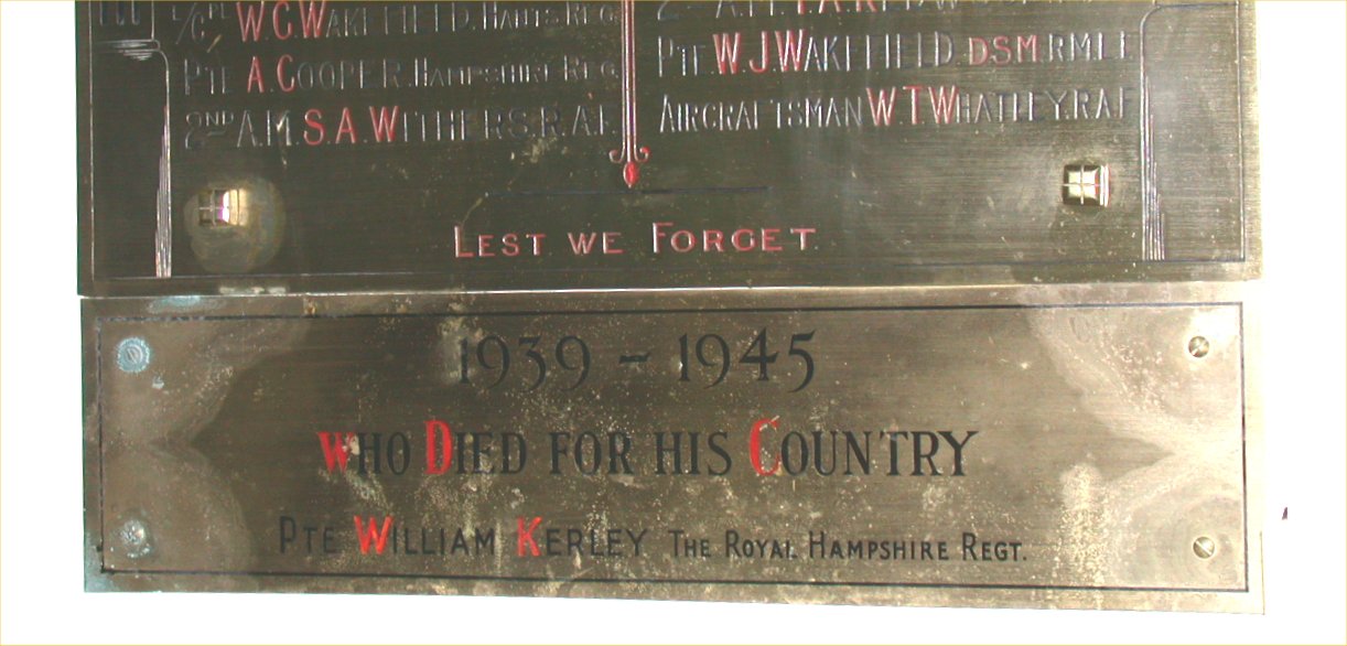 1939 - 1945 Who died for his Country Pte. William Kerley The Royal Hampshire Regt.