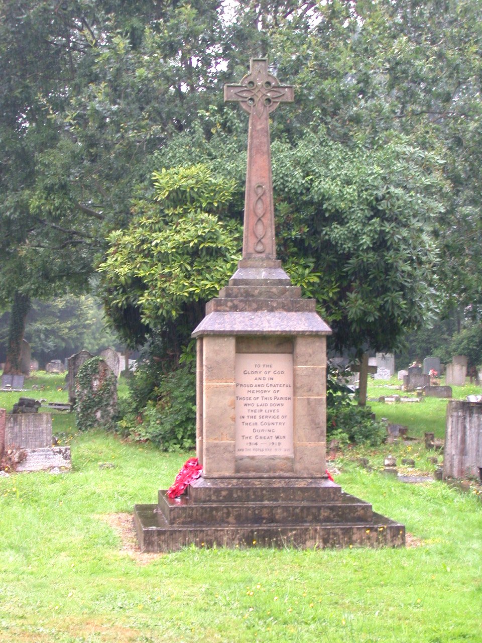 Stone cross in St Leonards churchyard, names on panels on base plinth (Nothing in church).