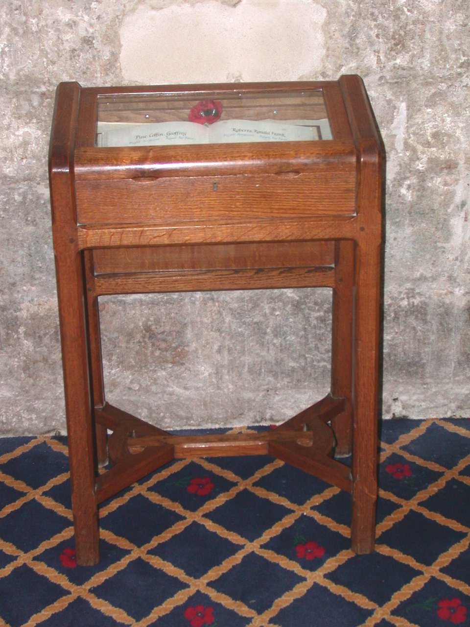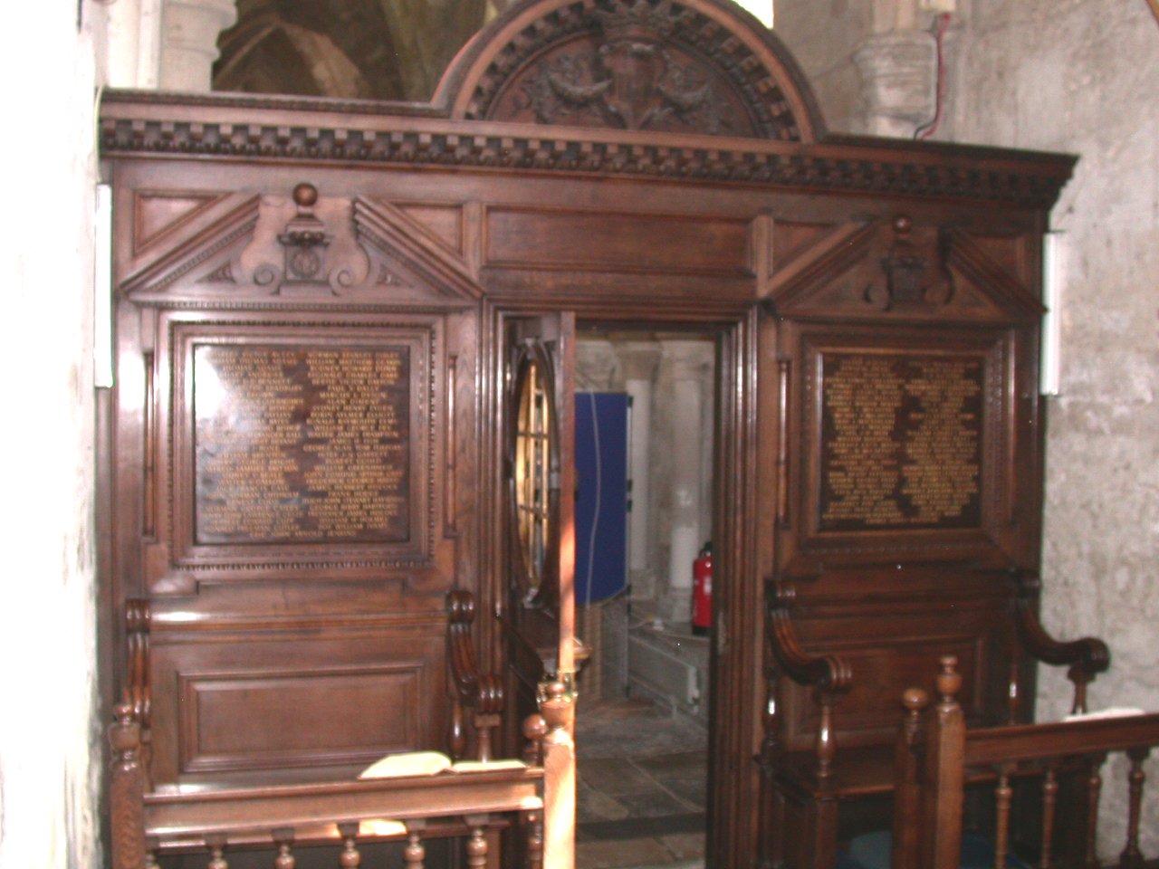 Memorial chapel in Christchurch Priory, a panel of names each side inside the entrance to the chapel