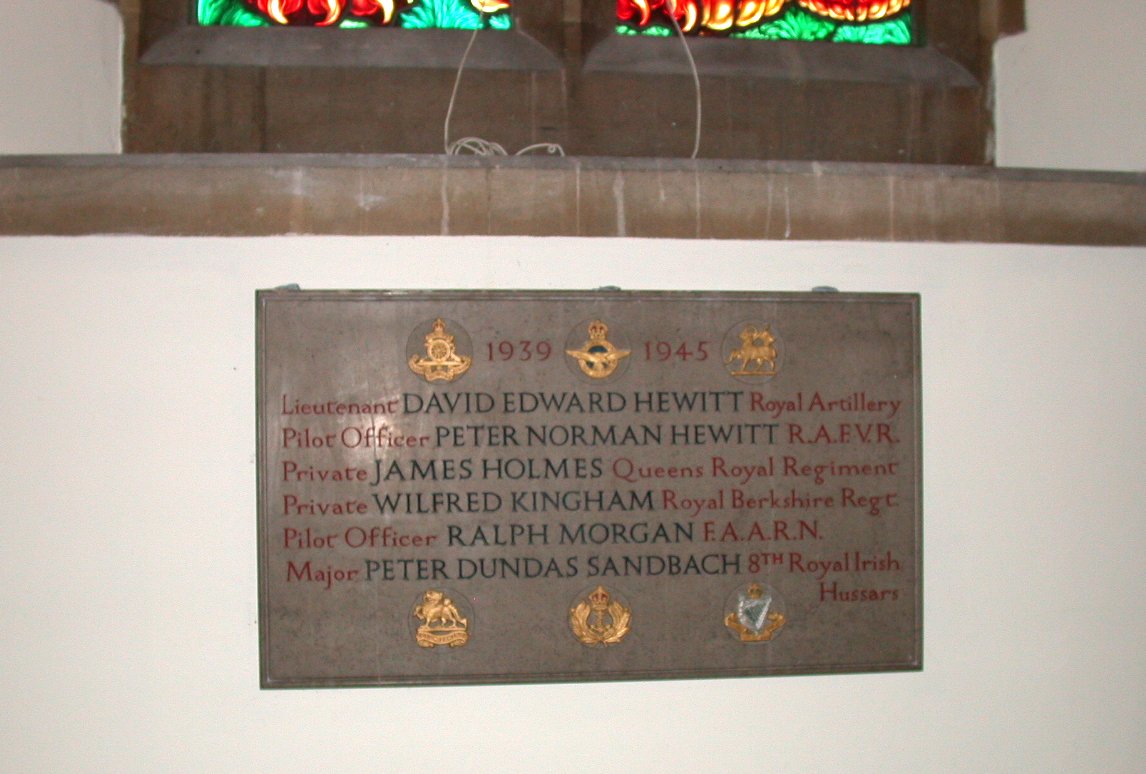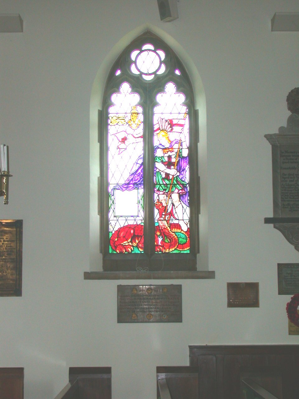 Window with private inscription above WW2 memorial.