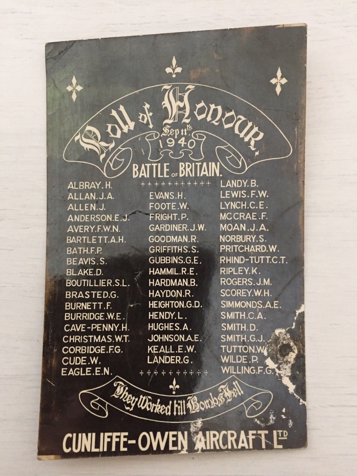 they worked till Bombs Fell Cunliffe-Owen Aircraft Ltd.