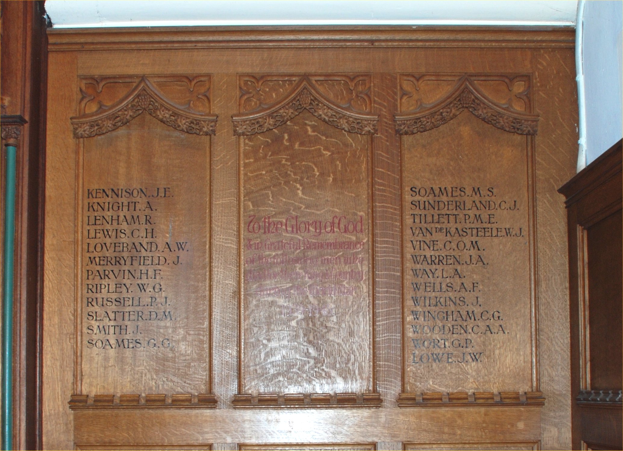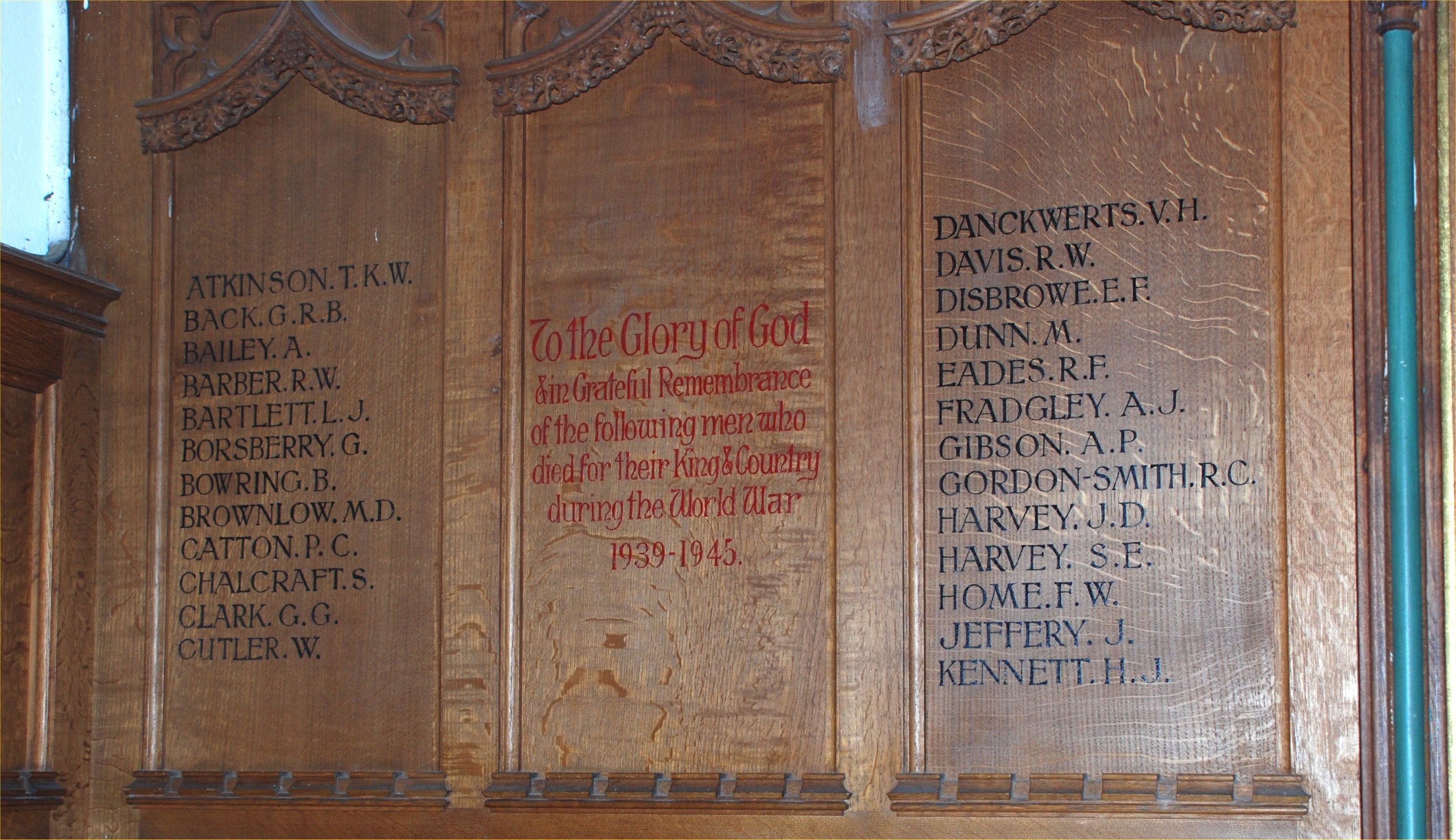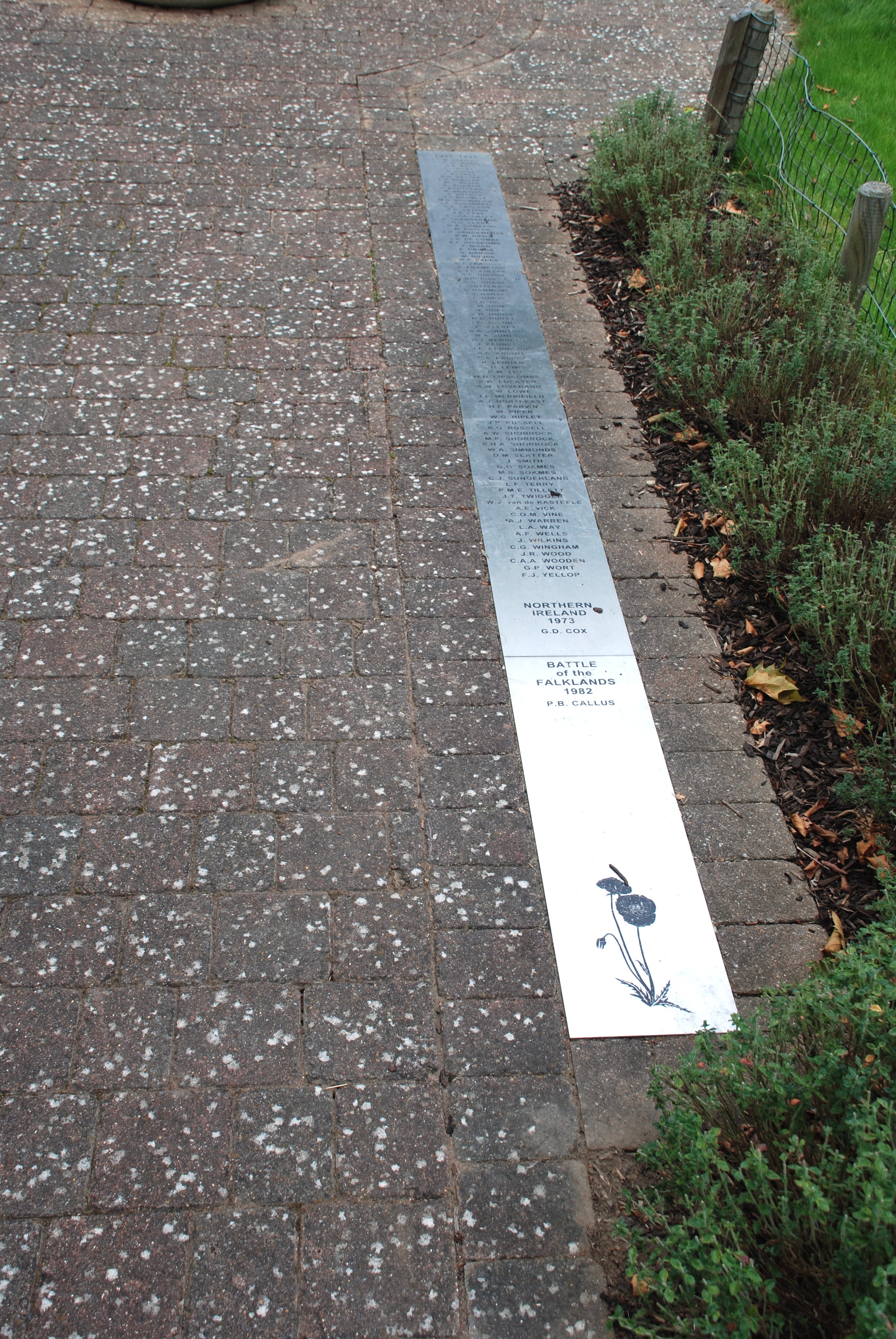 Garden of Remembrance in Village, metal plaque inset into ground on right side with WW2 names, garden made around 2008.