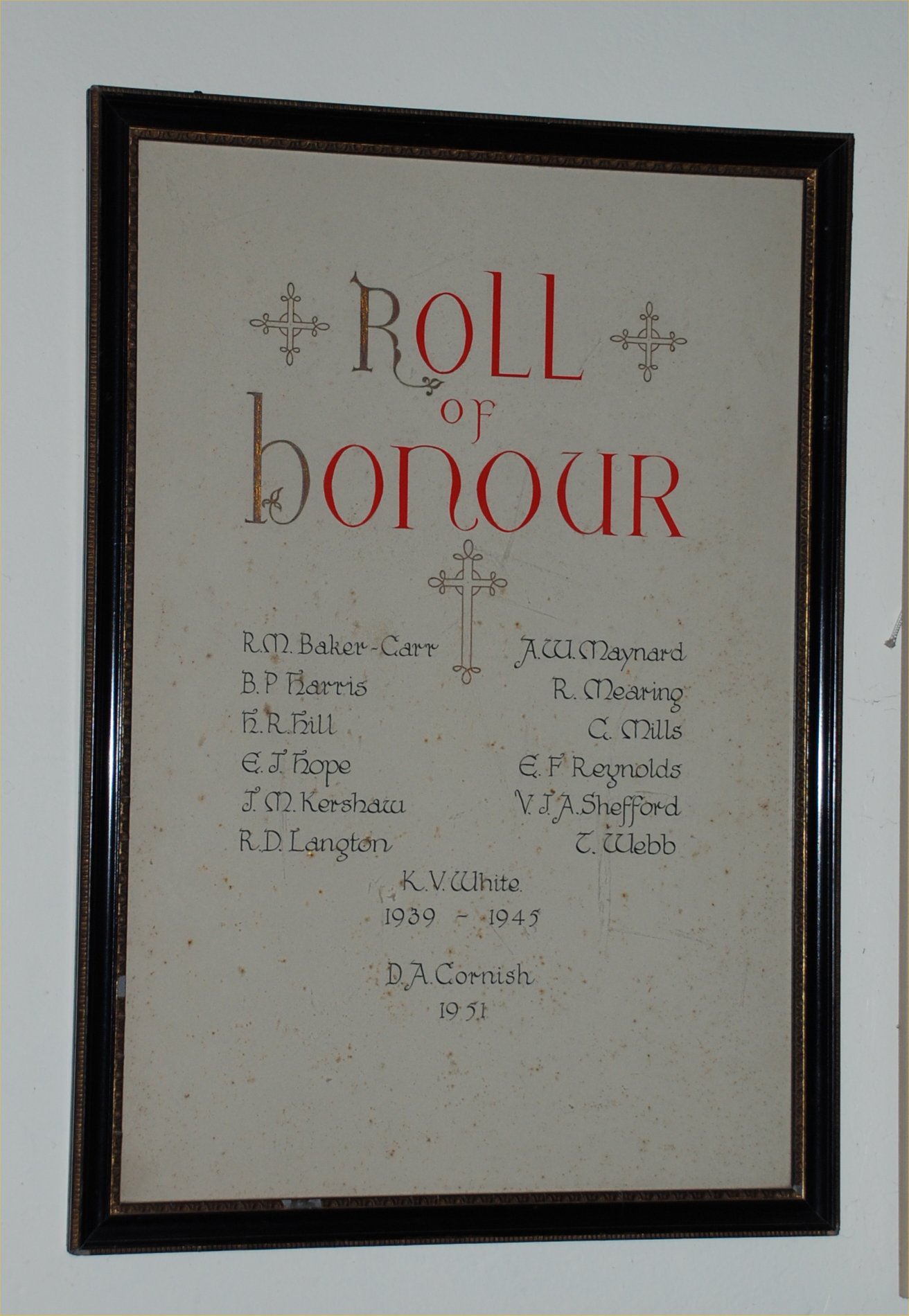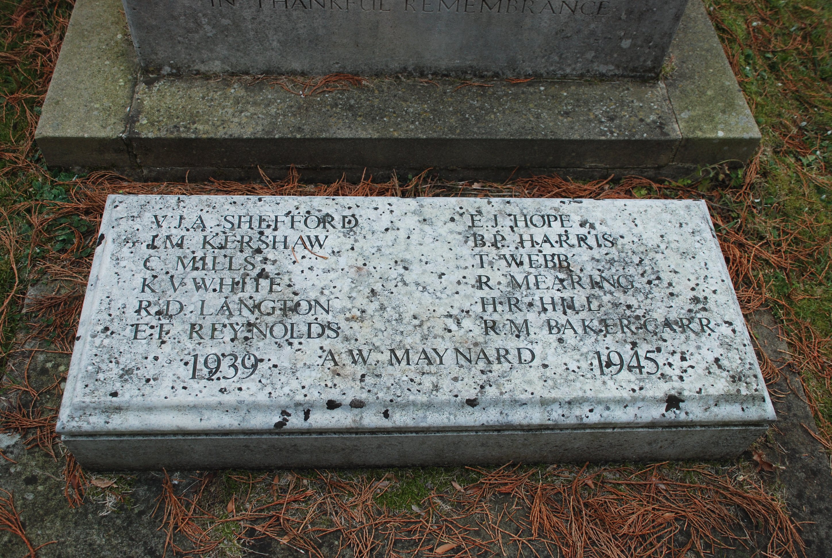 R.M. Baker-Carr A.W. Maynard B.P. Harris R. Mearing H.R. Hill C. Mills E.J. Hope E.F. Reynolds J.M. Kershaw V.J.A. Shefford R.D. Langton T. Webb K.V. White 1939 - 1945