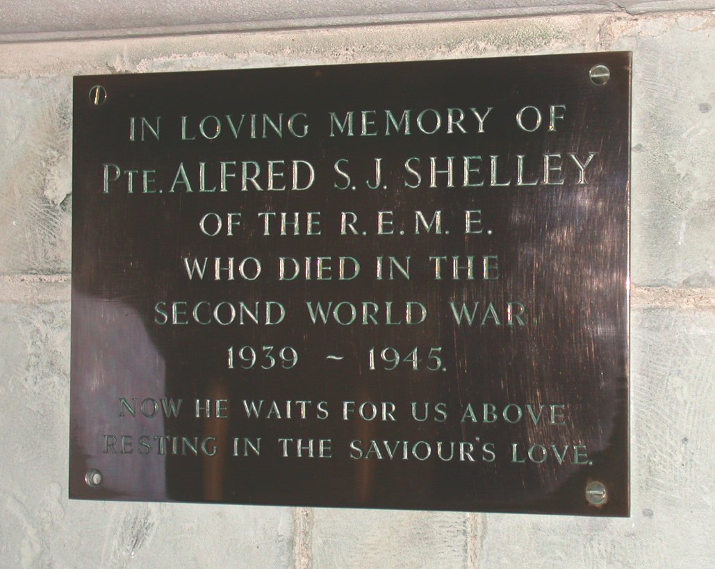Brass plaque on wall in St Katharine of Alexandria's Church below Great War memorial.