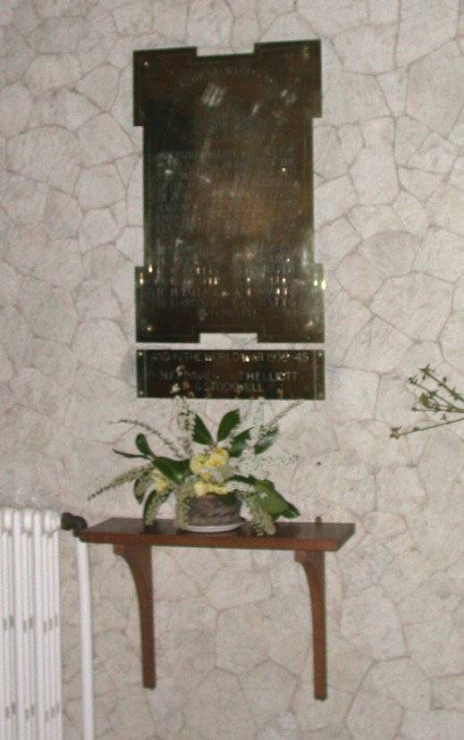 Brass plaque on wall in St Peter & St Paul's Church under Great War Memorial.
