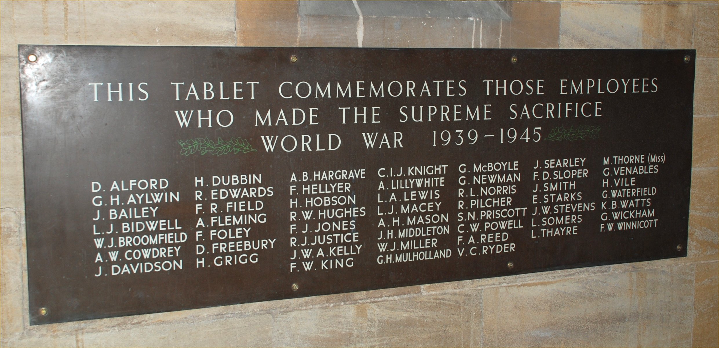 This tablet commemorates those employees who made the supreme sacrifice World War 1939-1945