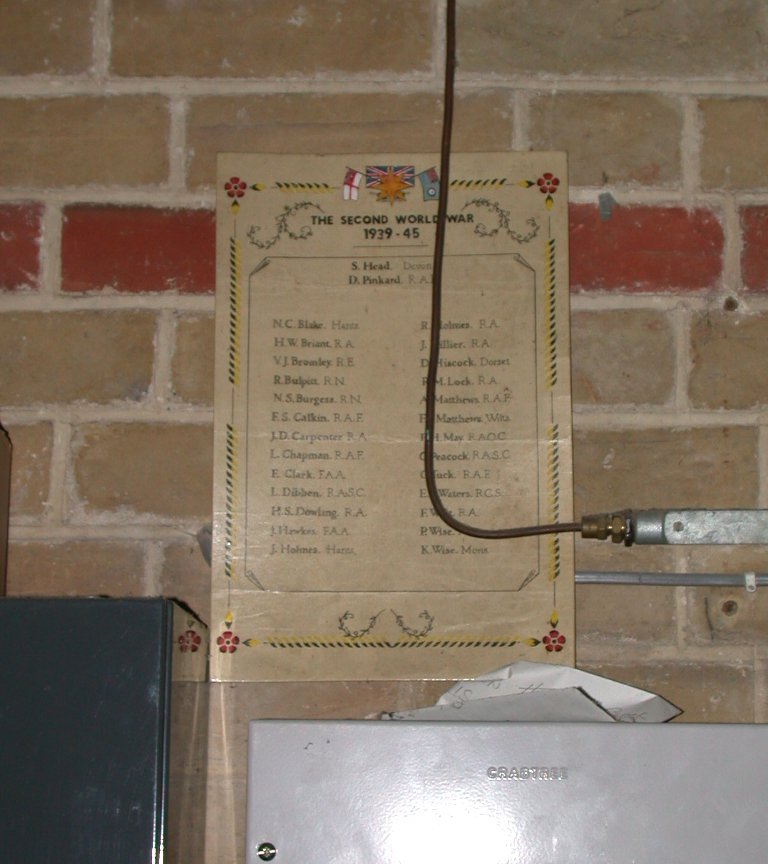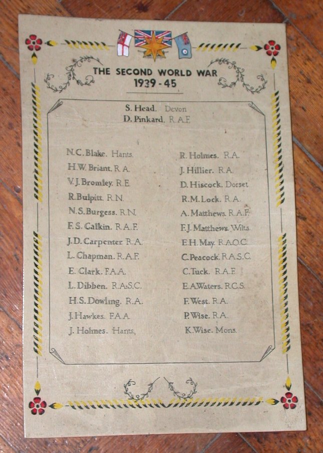 N.C.Blake. Hants. H.W.Briant. R.A. V.J.Bromley. R.E. R.Bulpitt. R.N. N.S.Burgess. R.N. F.S.Calkin. R.A.F. J.D.Carpenter. R.A. L.Chapman. R.A.F. E.Clark. F.A.A. L.Dibben. R.A.S.C. H.S.Dowling. R.A. J.Hawkes. F.A.A. J.Holmes. Hants.