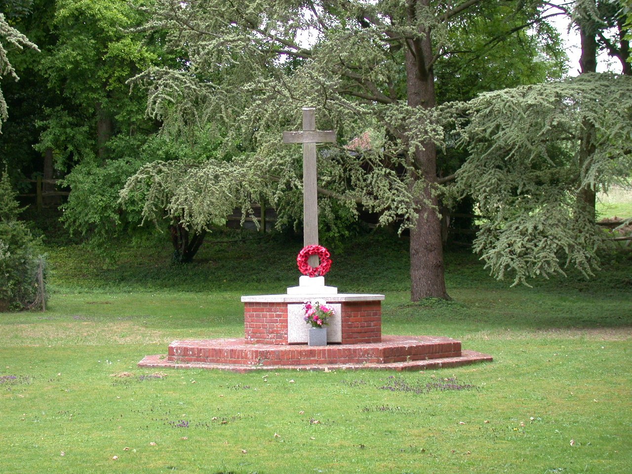 Cross on village green next to church of St Stephen, plaque added to front face of plinth.