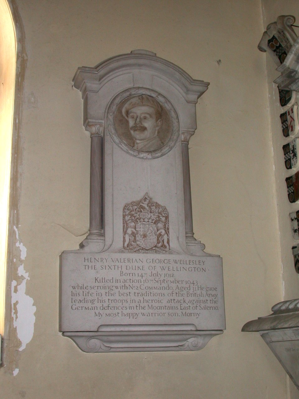 Marble plaque on wall in St Mary's Church, under Great War memorial.