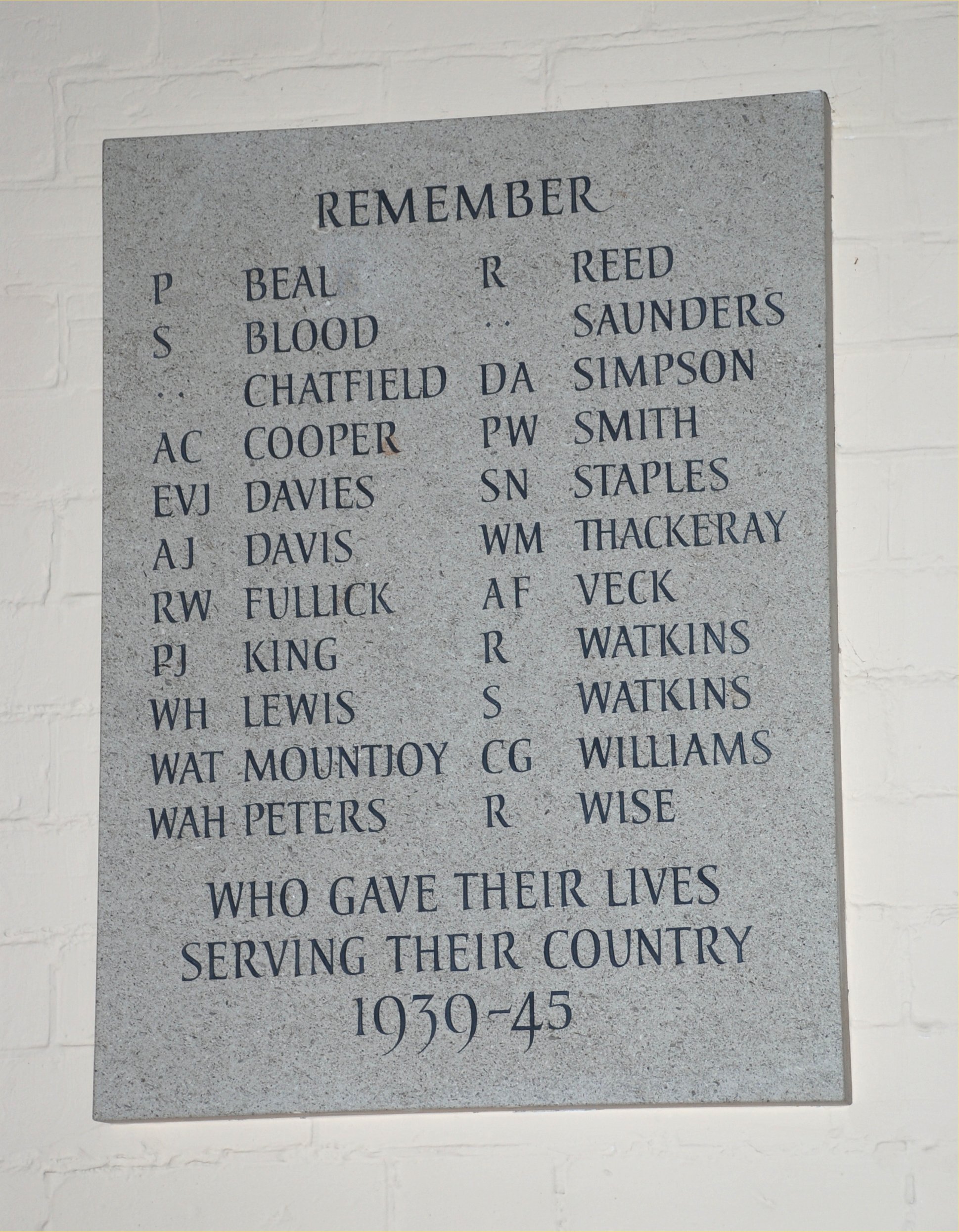 P Beal S Blood .. Chatfield AC Cooper EVJ Davies AJ Davis RW Fullick PJ King WH Lewis WAT Mountjoy WAH Peters
