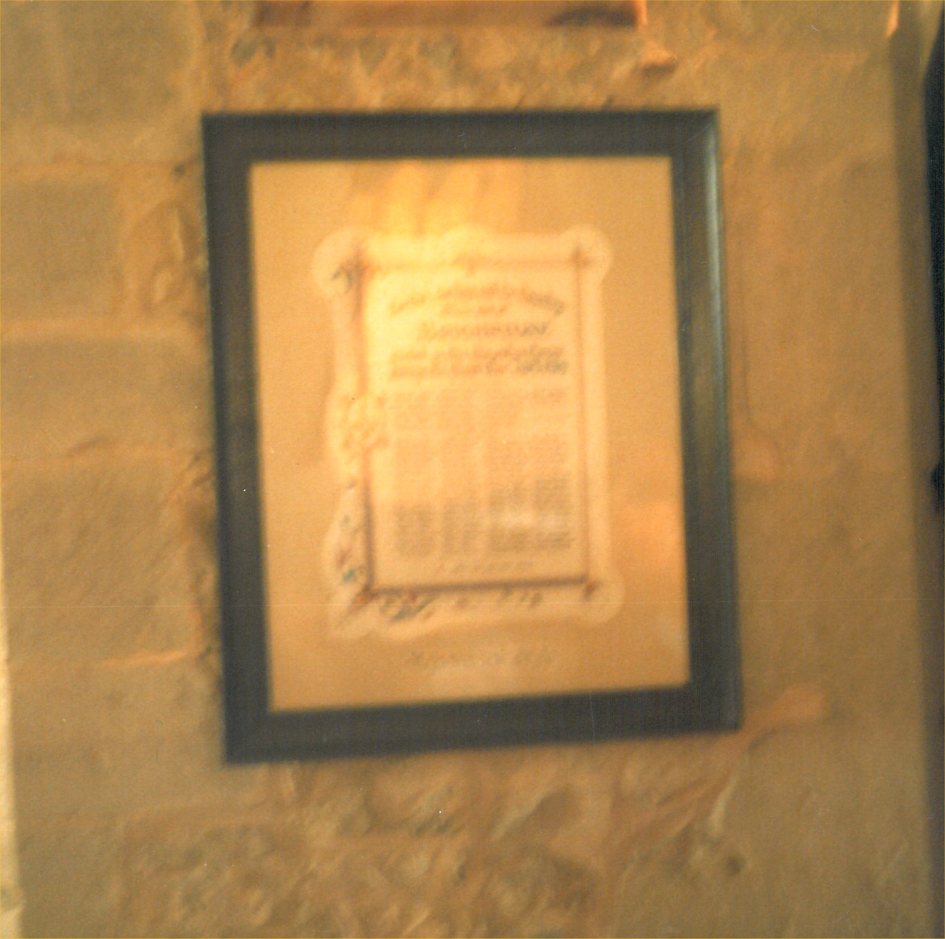 Hand written glazed scroll on wall in St Mary the Virgin Church.