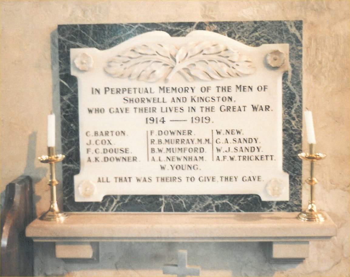 In perpetual memory of the men of Shorwell and Kingston, who gave their lives in the Great War 1914 - 1919
