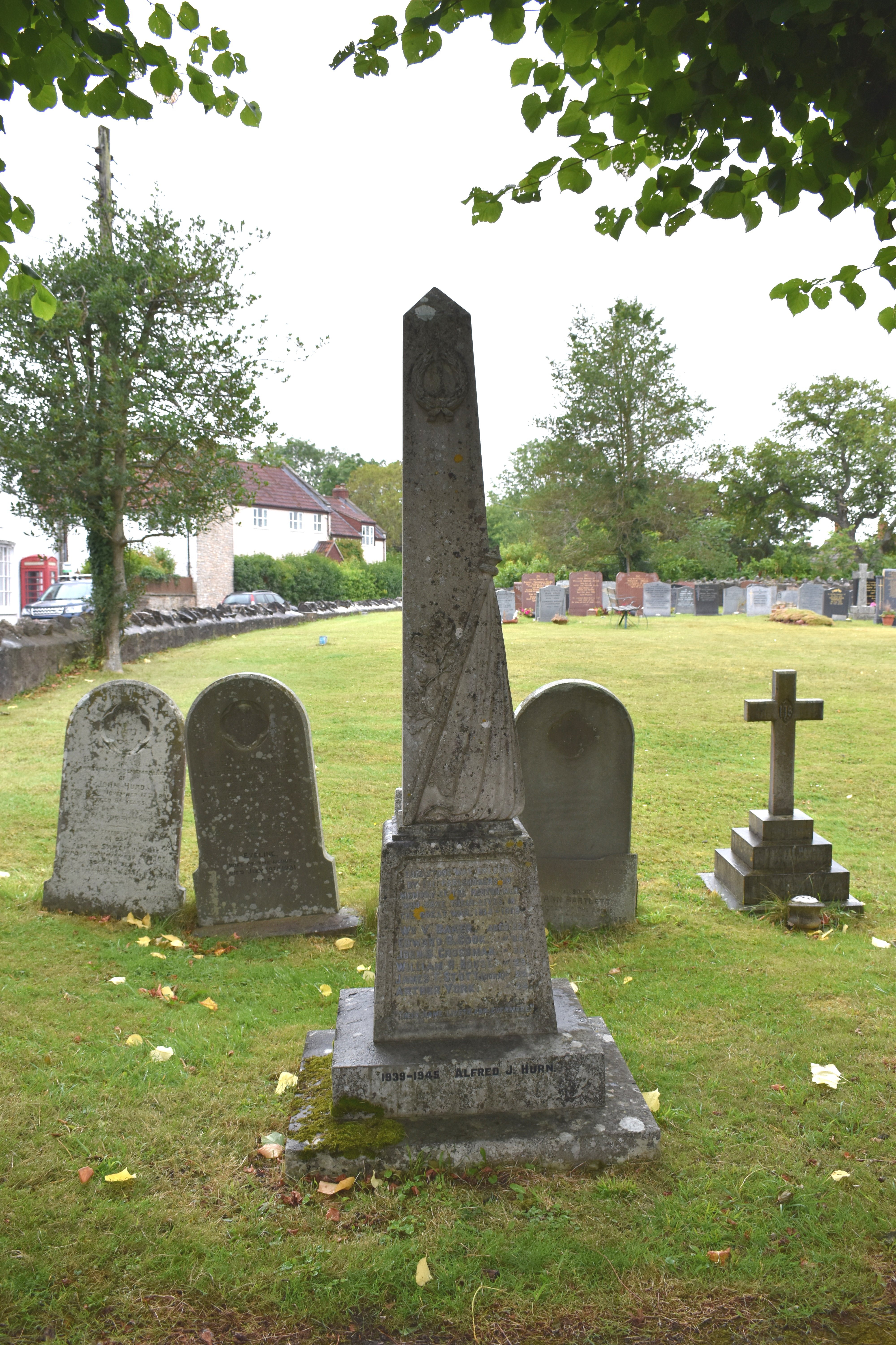 Stone obelisk in Christ Church churchyard, inscription on front of plinth.