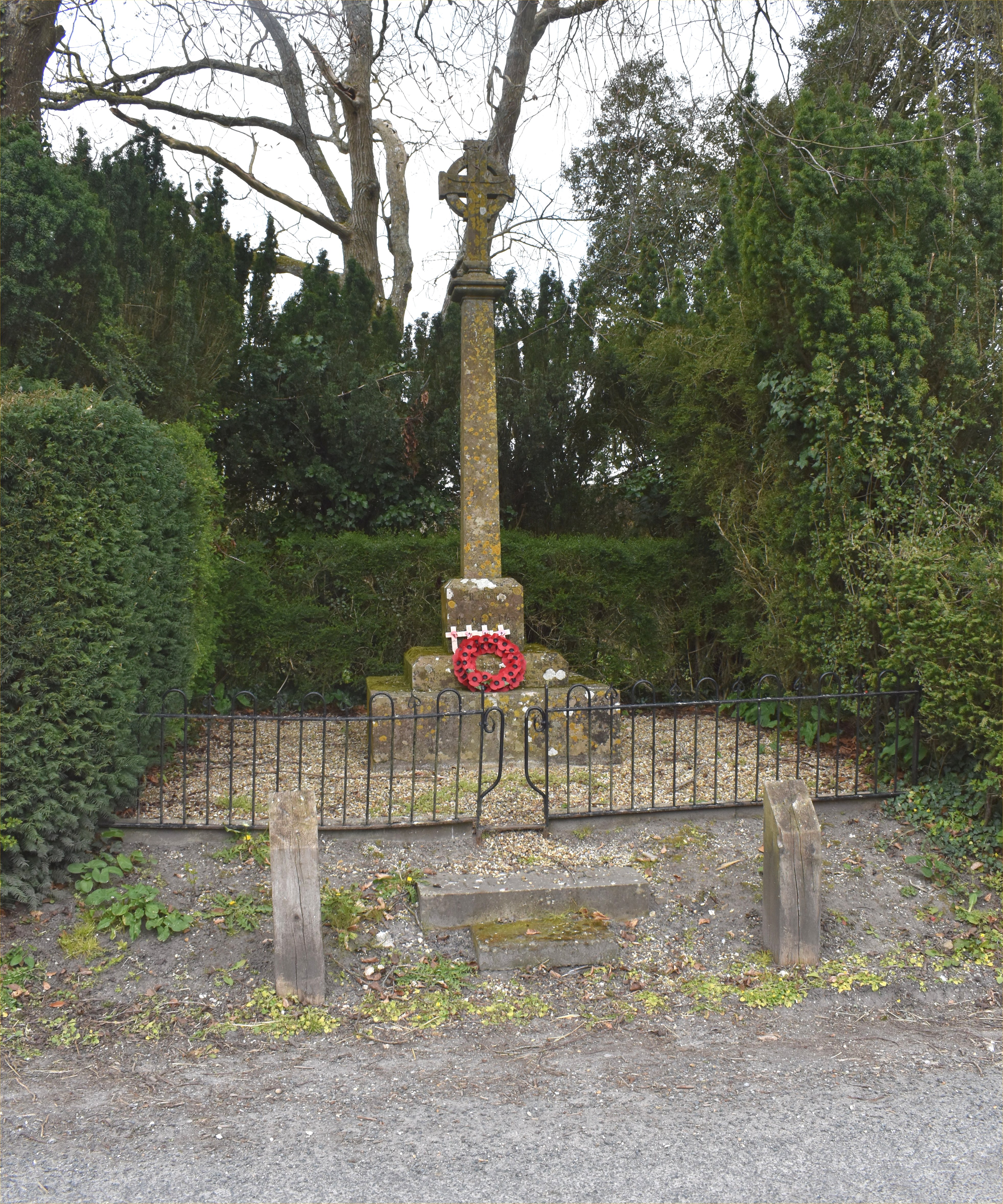 Stone cross srt back on roadside in village, difficult to read names as build up of moss etc. (Nothing in St Mary the Virgin Church)