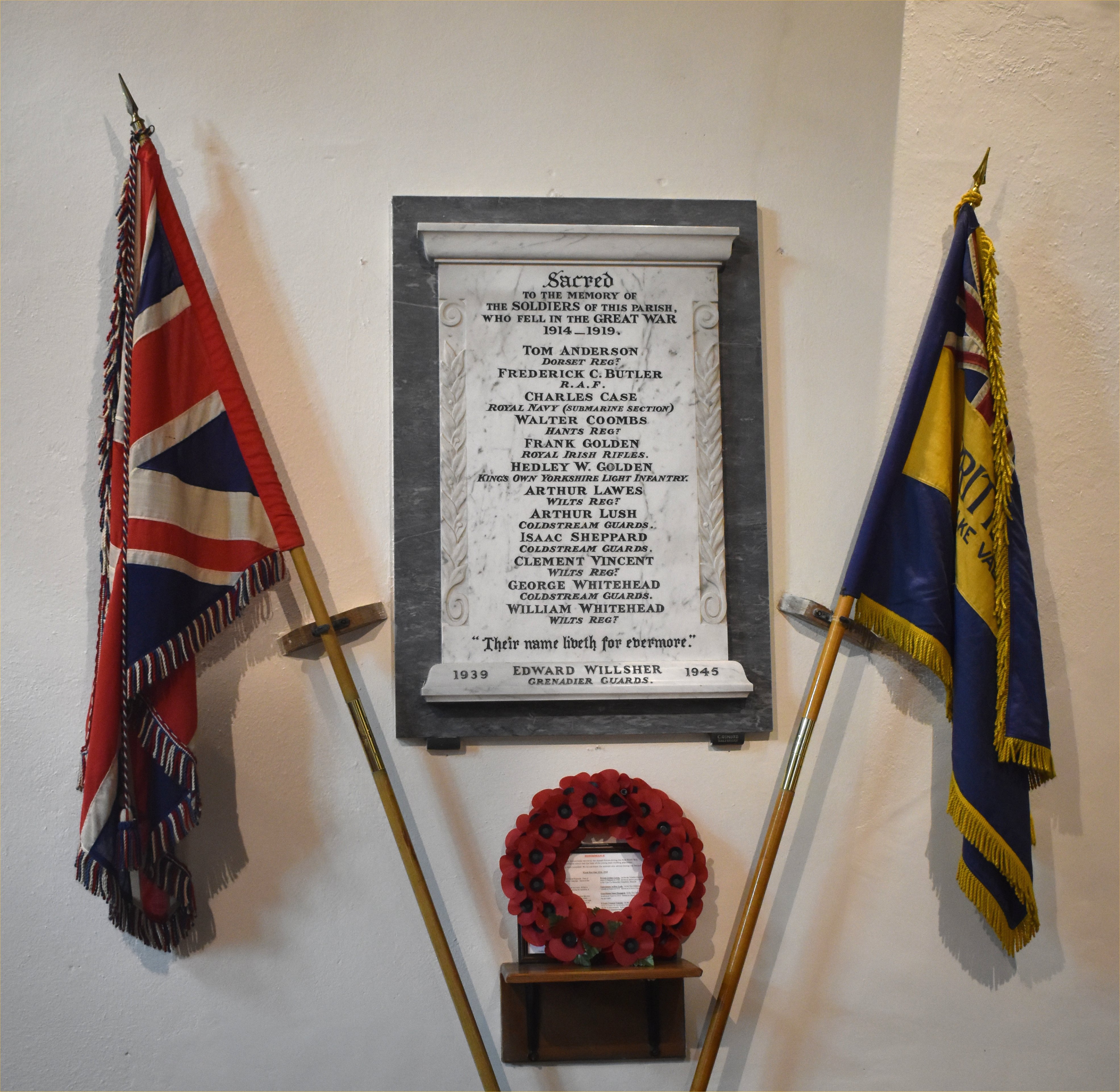 Roll of Honour Sacred to the memory of the Soldiers of this parish who fell in the Great War 1914_1919. Tom Anderson Dorset Regt.