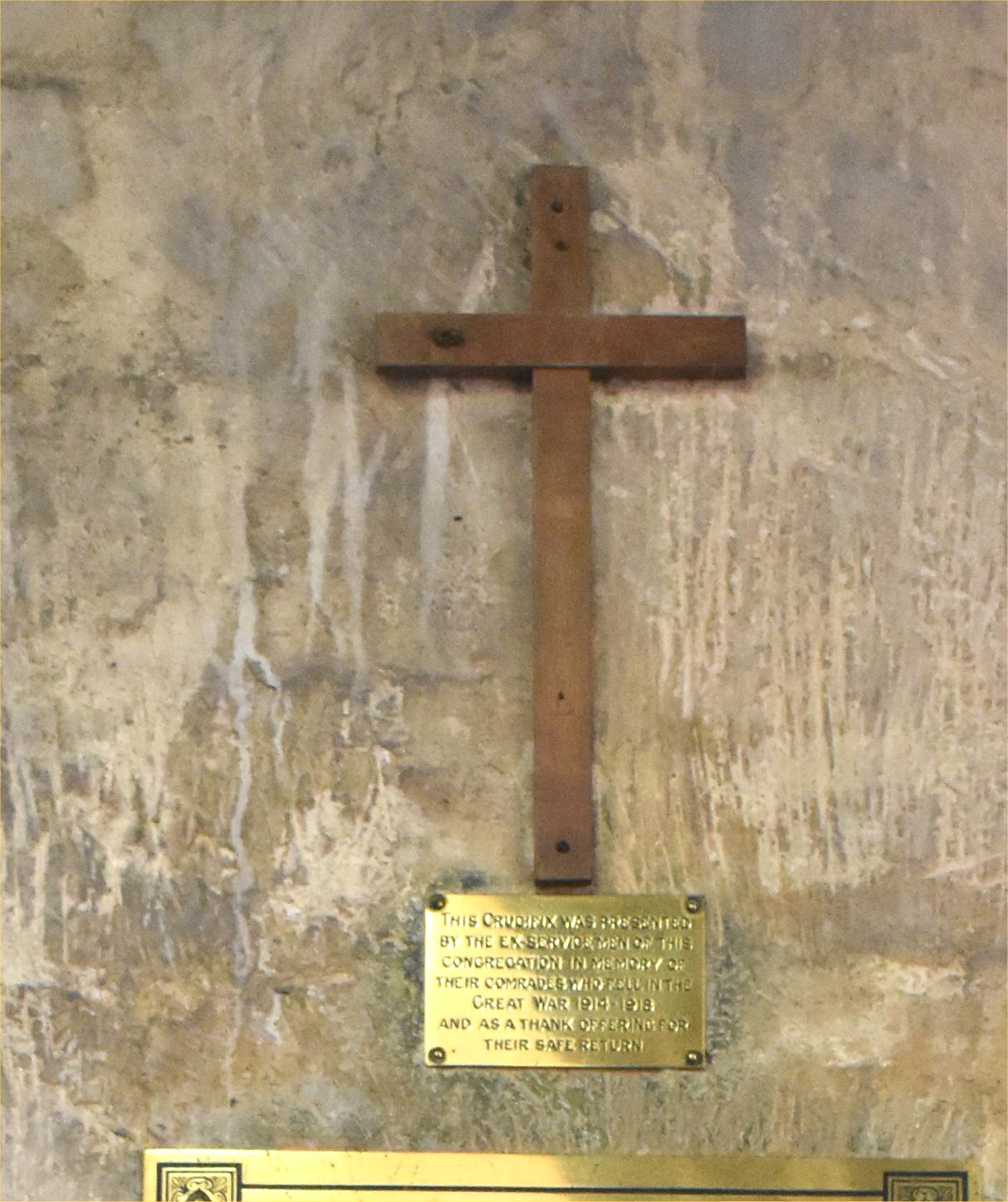 This Crucifix was presented by the ex-service men of this congregation in memory of their comrades who fell in the Great War 1914-1918 and as a thank offering for their safe return.