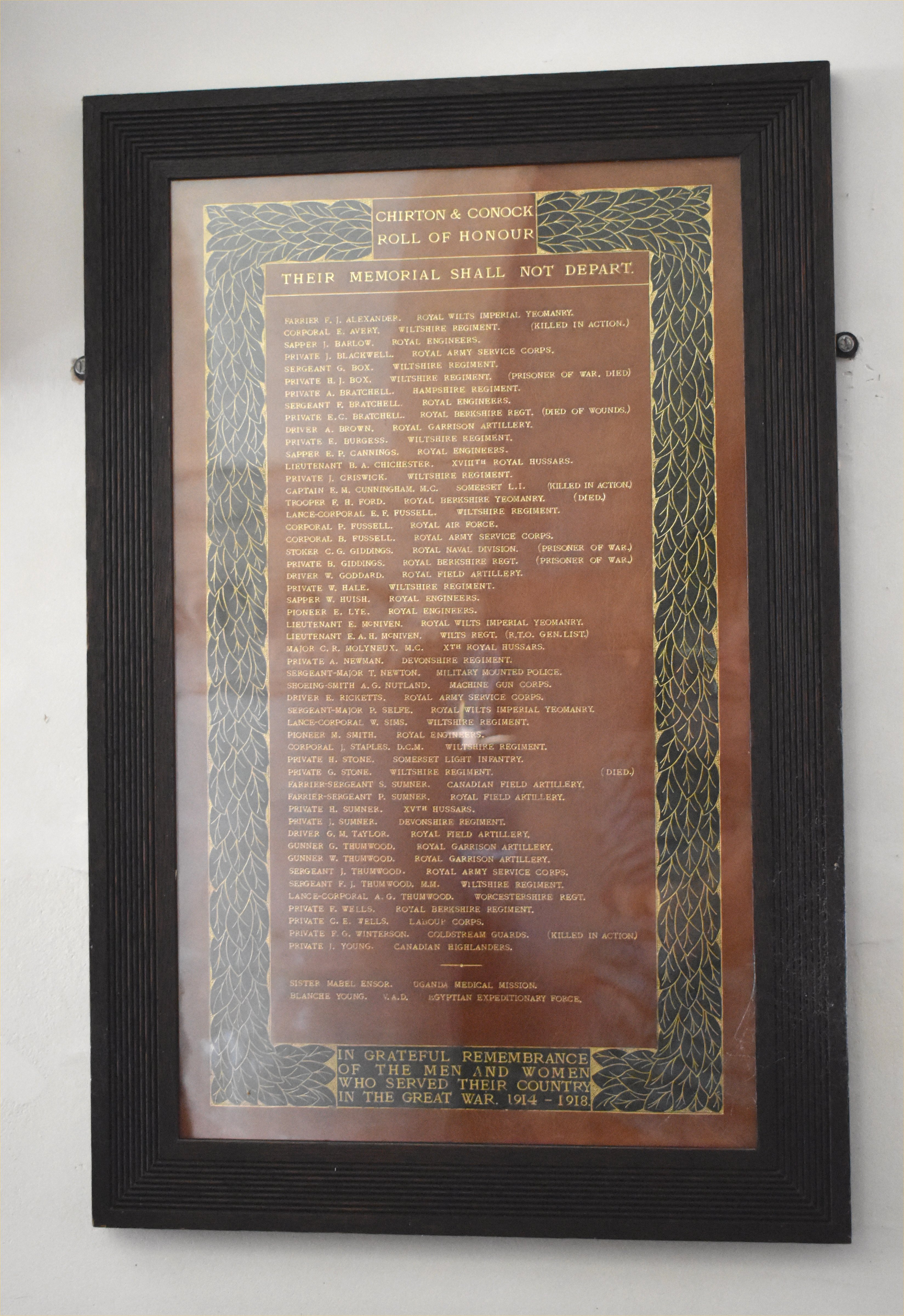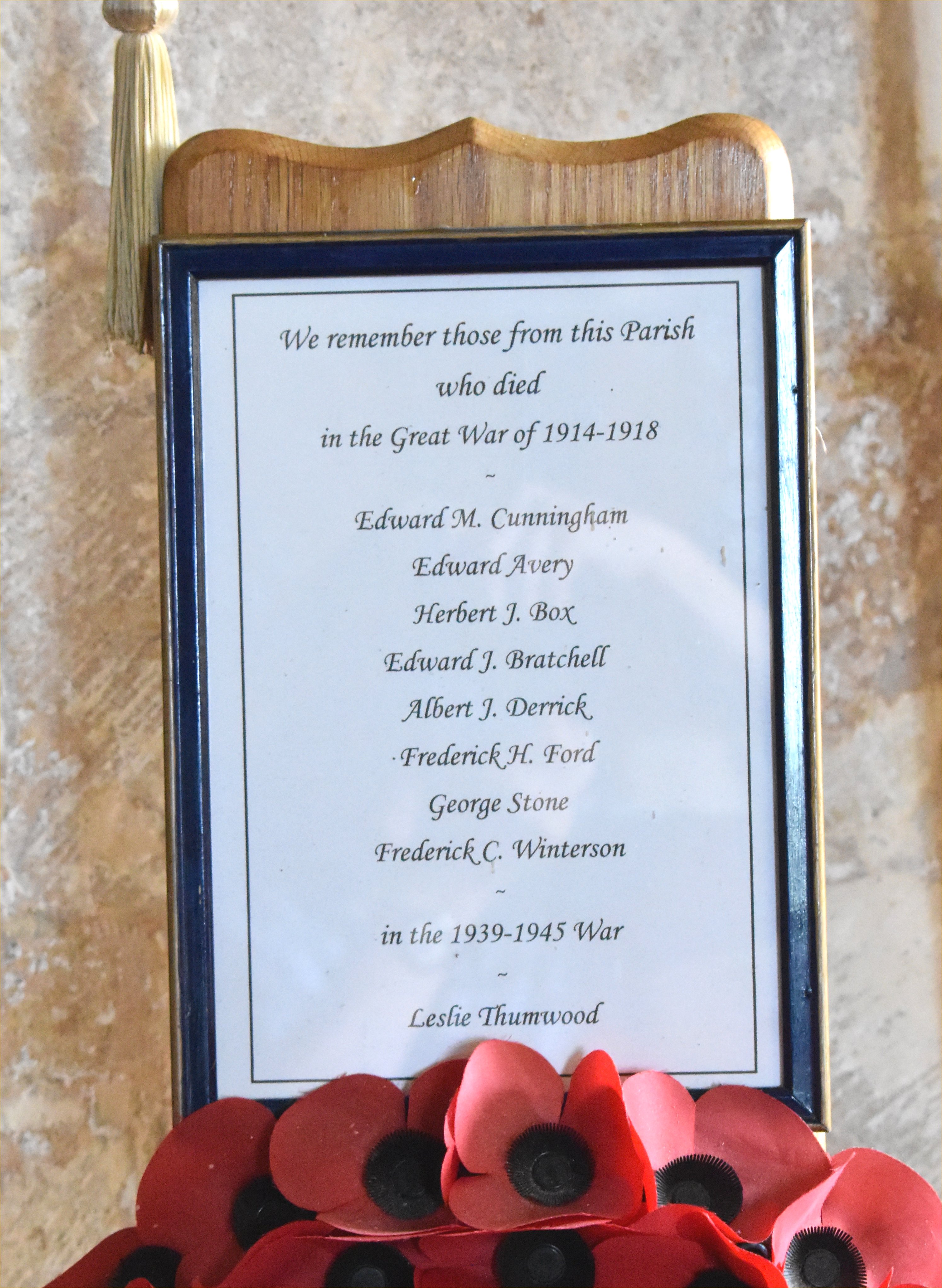 New/modern framed typed paper scroll on wall in St John the Baptist Church