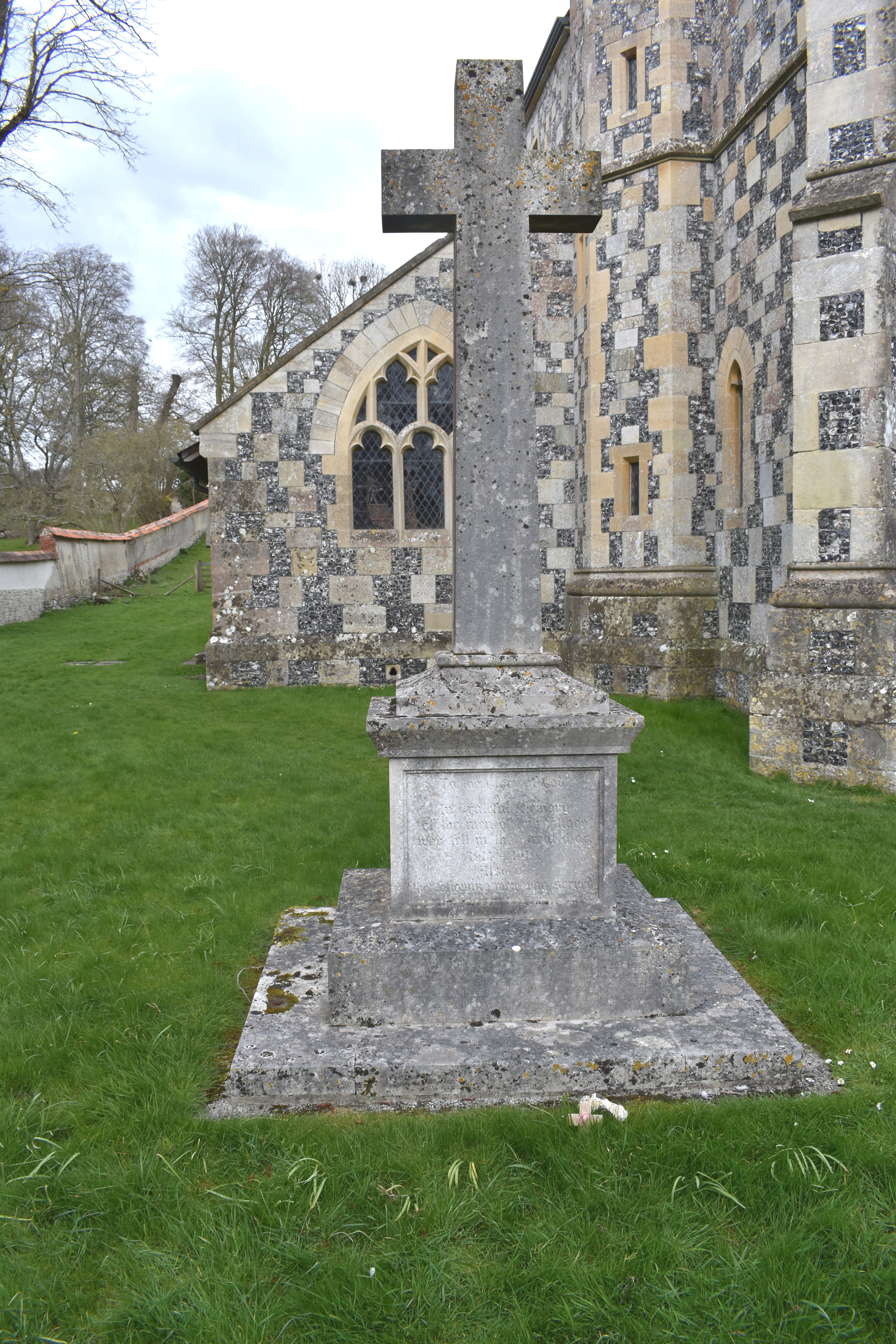 Stone cross in St Mary & All Saints Churchyard to left of church, inscriprions on faces of plinths, (Names of those who served becoming very difficult to read)