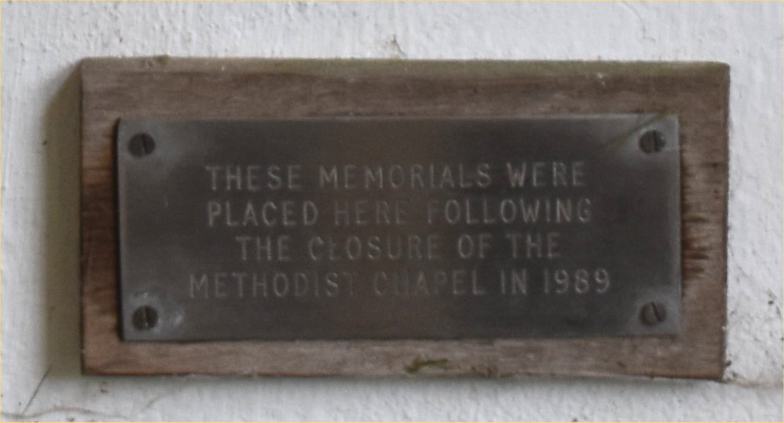 These memorials were placed here following the closure of the Methodist Chapel in 1989