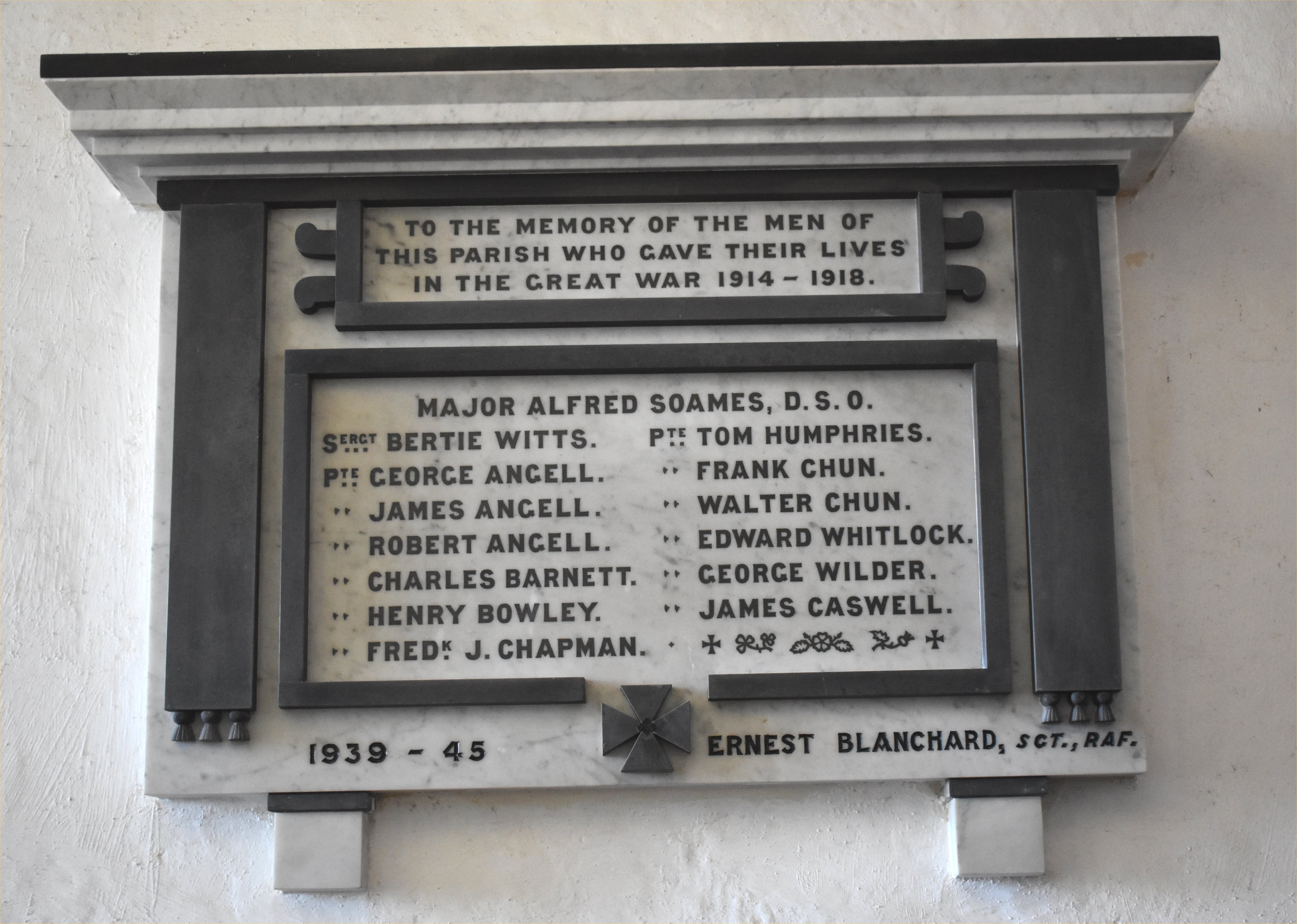To the memory of the men of this parish who gave their livees in the Great War 1914-1918.