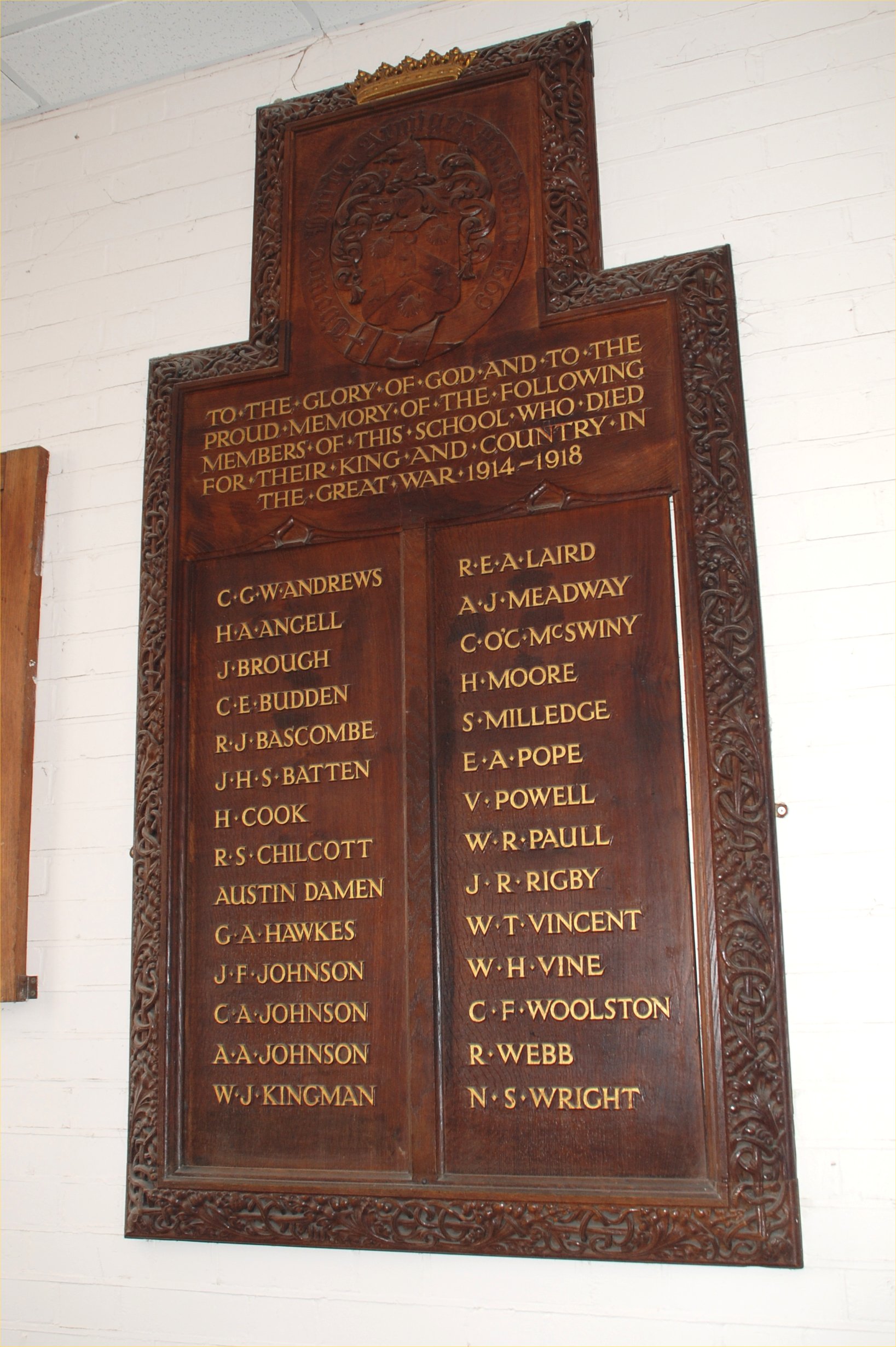 To the Glory of God and to the proud memory of the following members of this school who died for their King and Country in the Great War 1914-1918