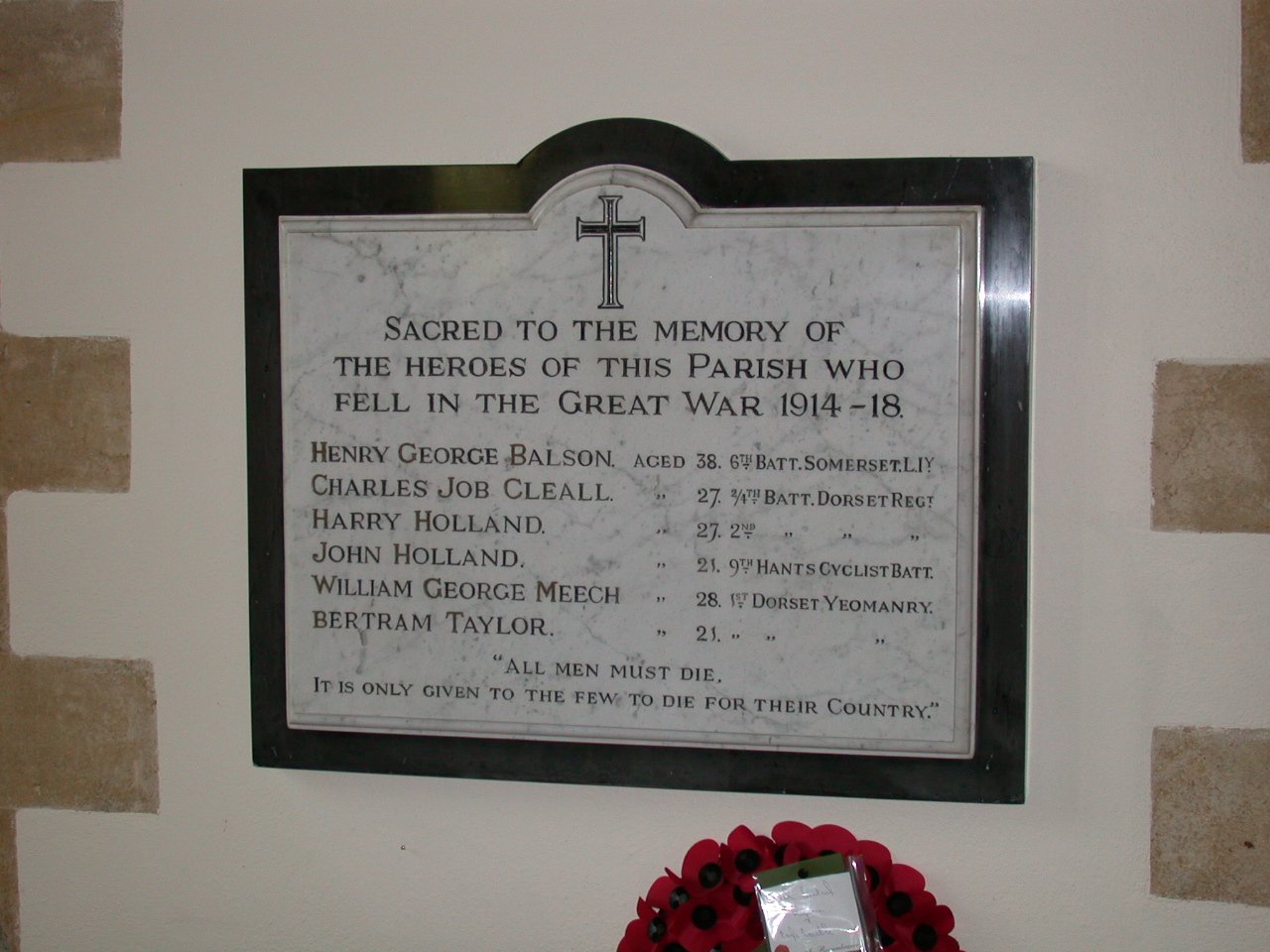 Henry George Balson. Aged 28 6th Batt. Somerset LIy.