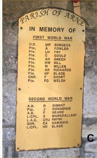 Parish of Arne In memory of First World War (now WW1 names) Second World War