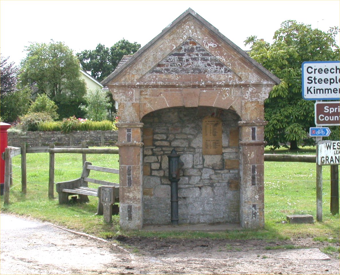 Brass plaque on wall in village pump shelter in Stoborough on village green.