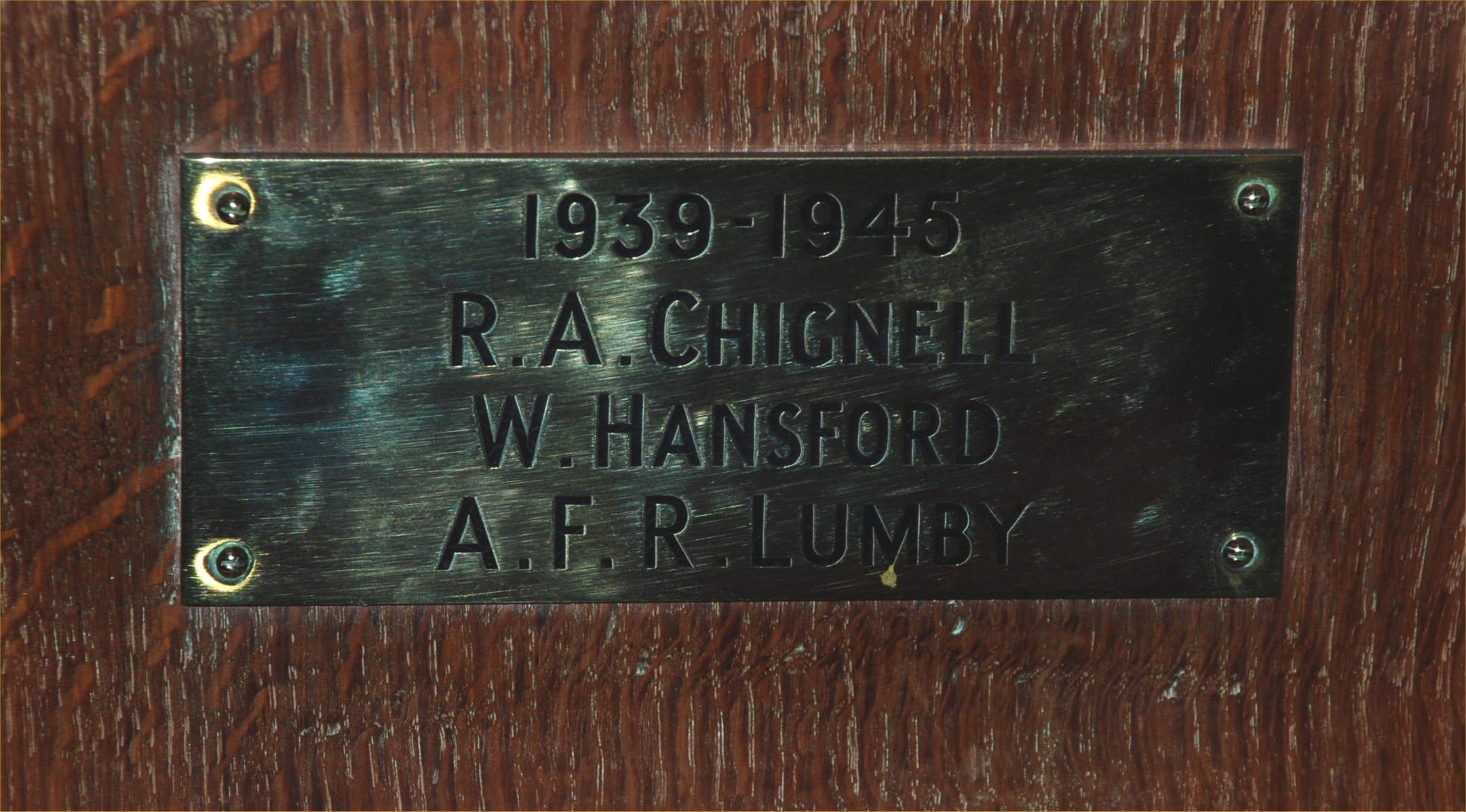 Brass plaque on organ in St Michael & All Angels Church.
