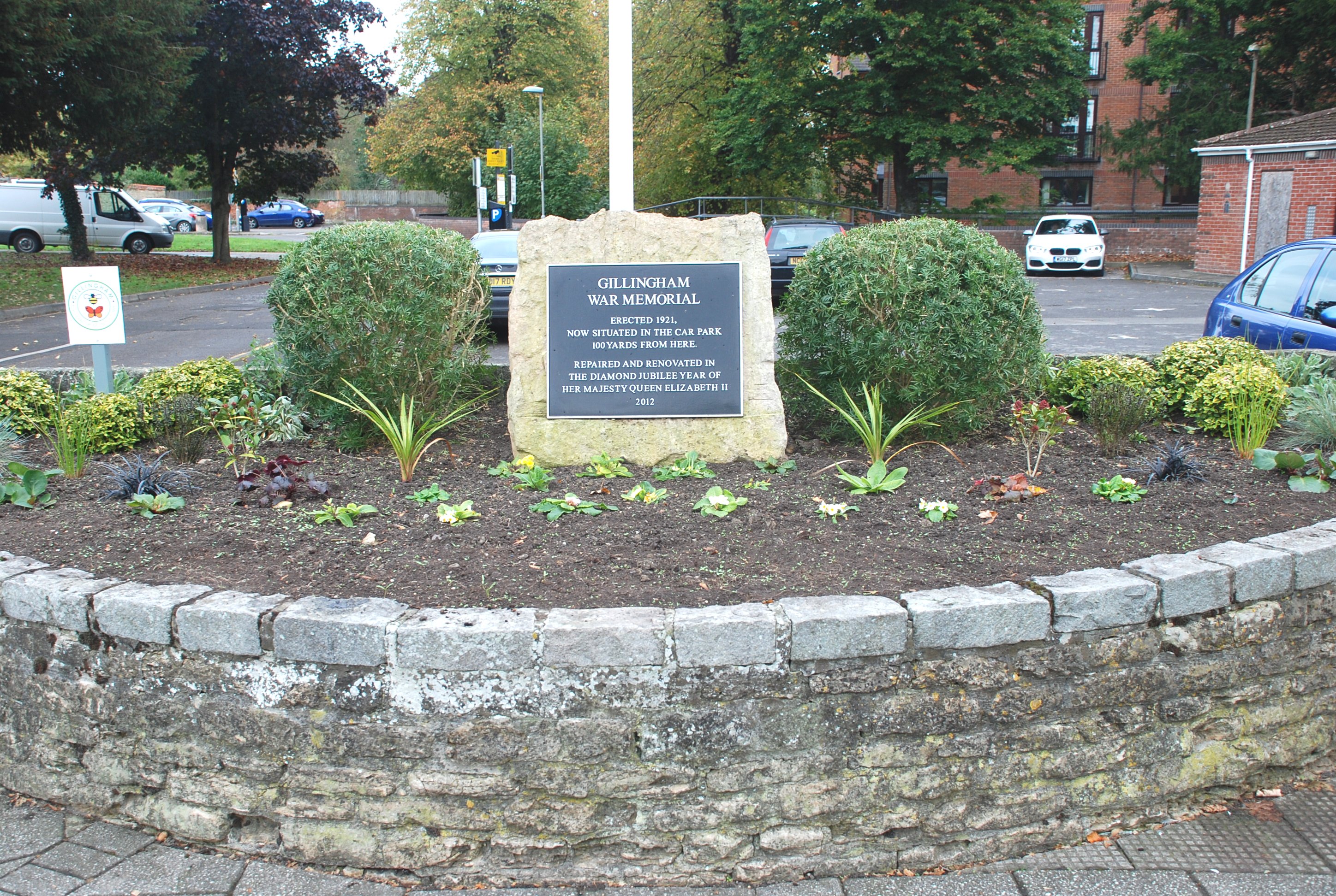 Gillingham War Memorial Erected in 1921, now situated in the car park 100 yards from here. Repaired and renovated in the diamond jubilee year of her majesty Queen Elizabeth II 2012