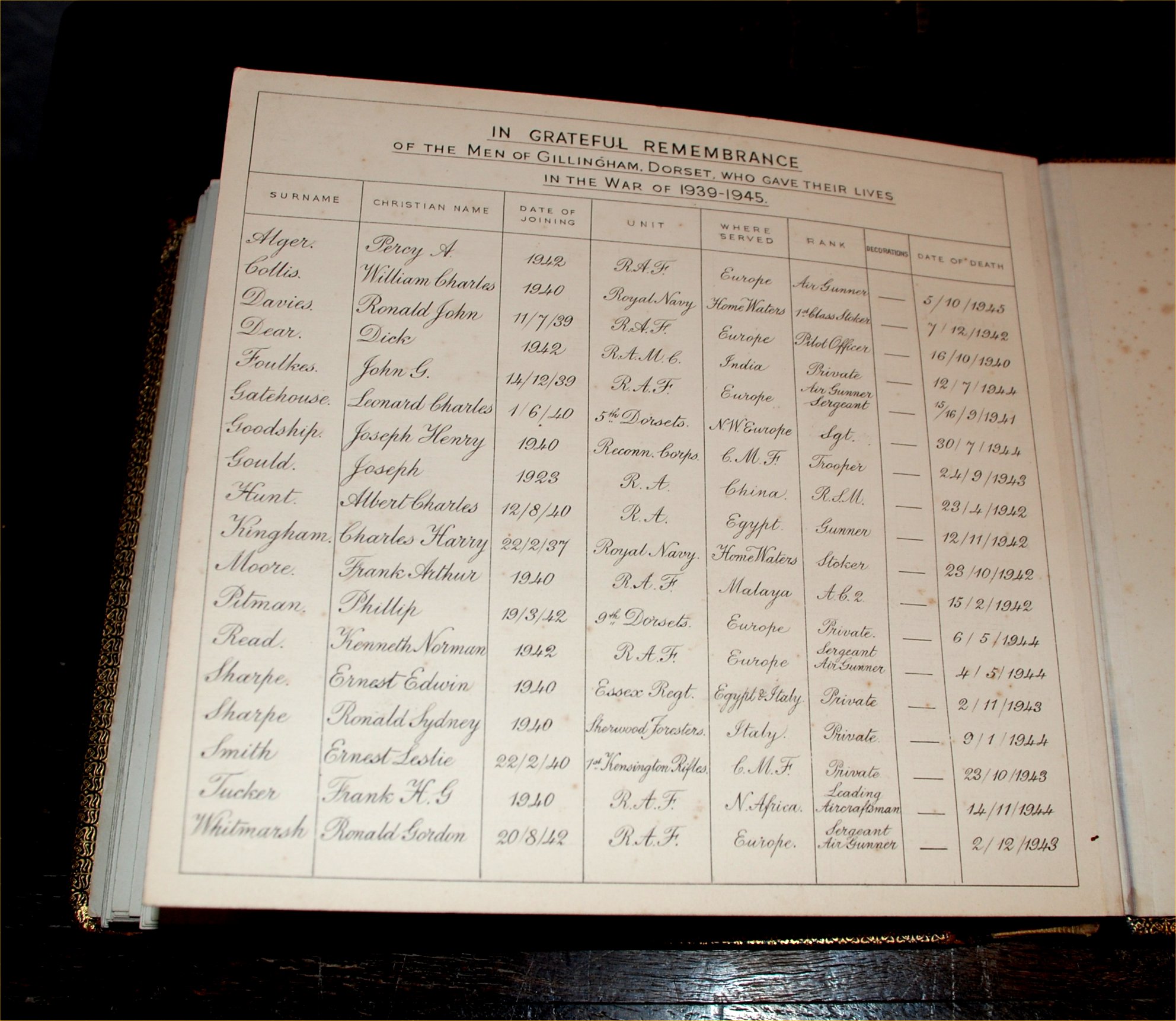 In Grateful Remembrance of the men of Gillingham, Dorset, who gave their lives in the War of 1939-1945