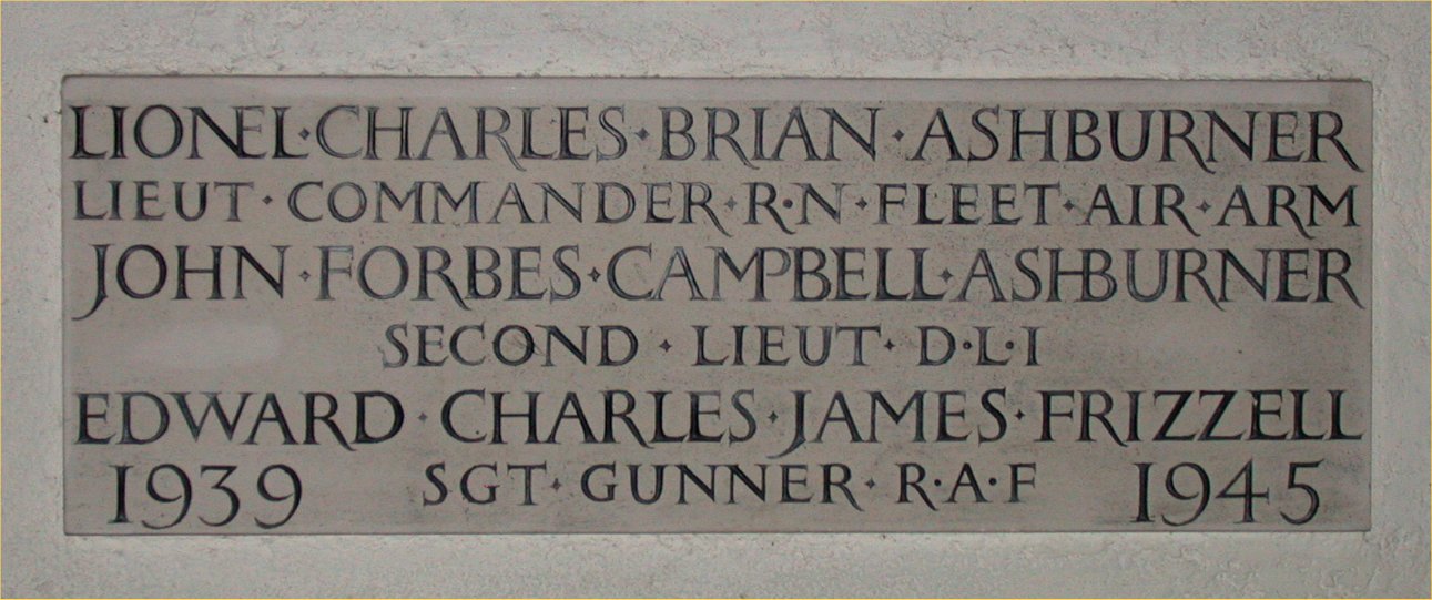 Lionel Charles Brian Ashburner Lieutenant Commander RN Fleet Air Arm John Forbes Campbell Ashburner Second Lieut DLI Edward Charles James Frizzell 1939 Sgt Gunner RAF 1945