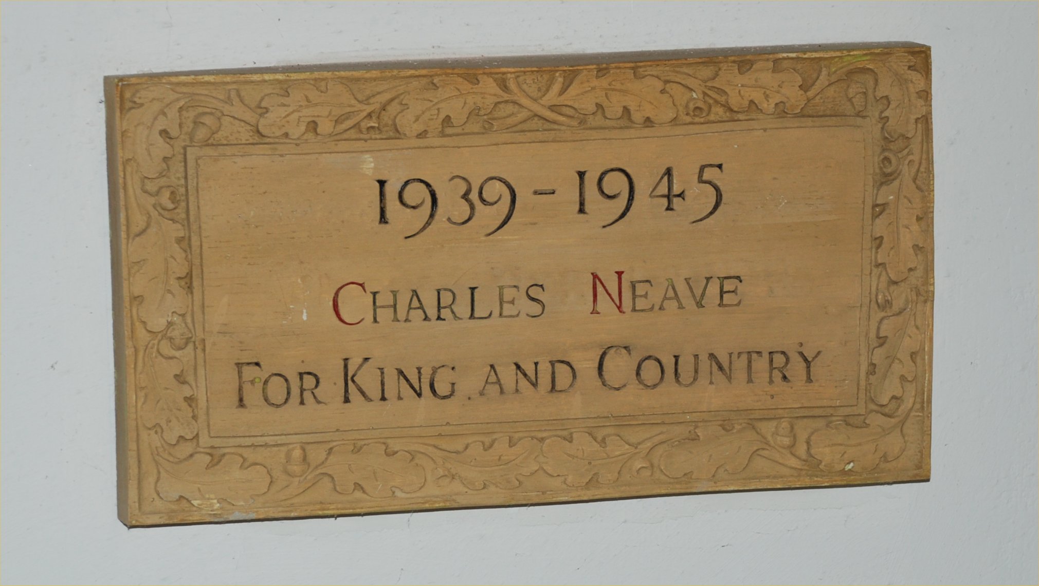 Wooden plaque on wall under Great War memorial on wall in St Rumbold's Church.