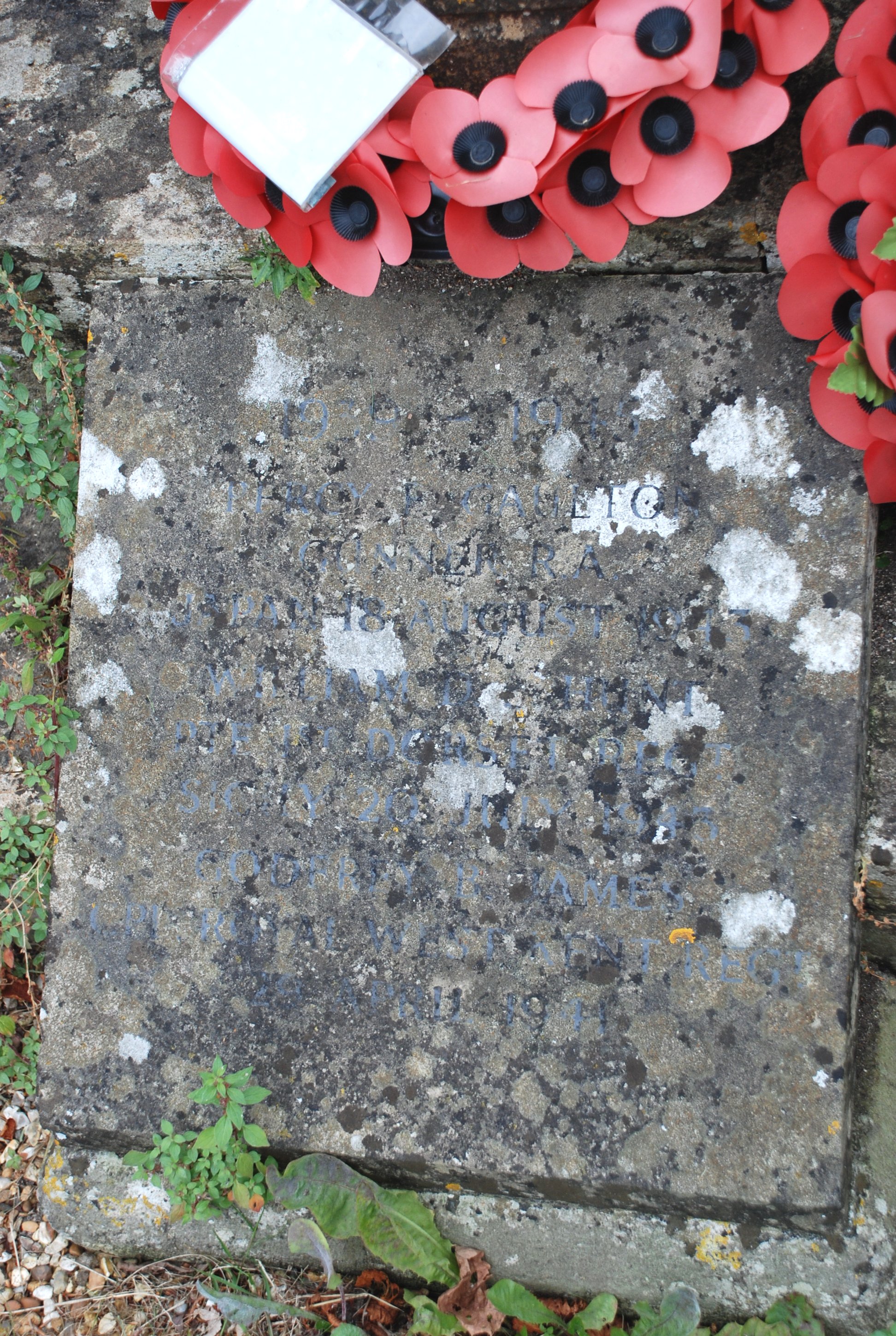 Stone cross in St John the Baptist Churchyard, stone plaque just in front of Great War memorial on steps.