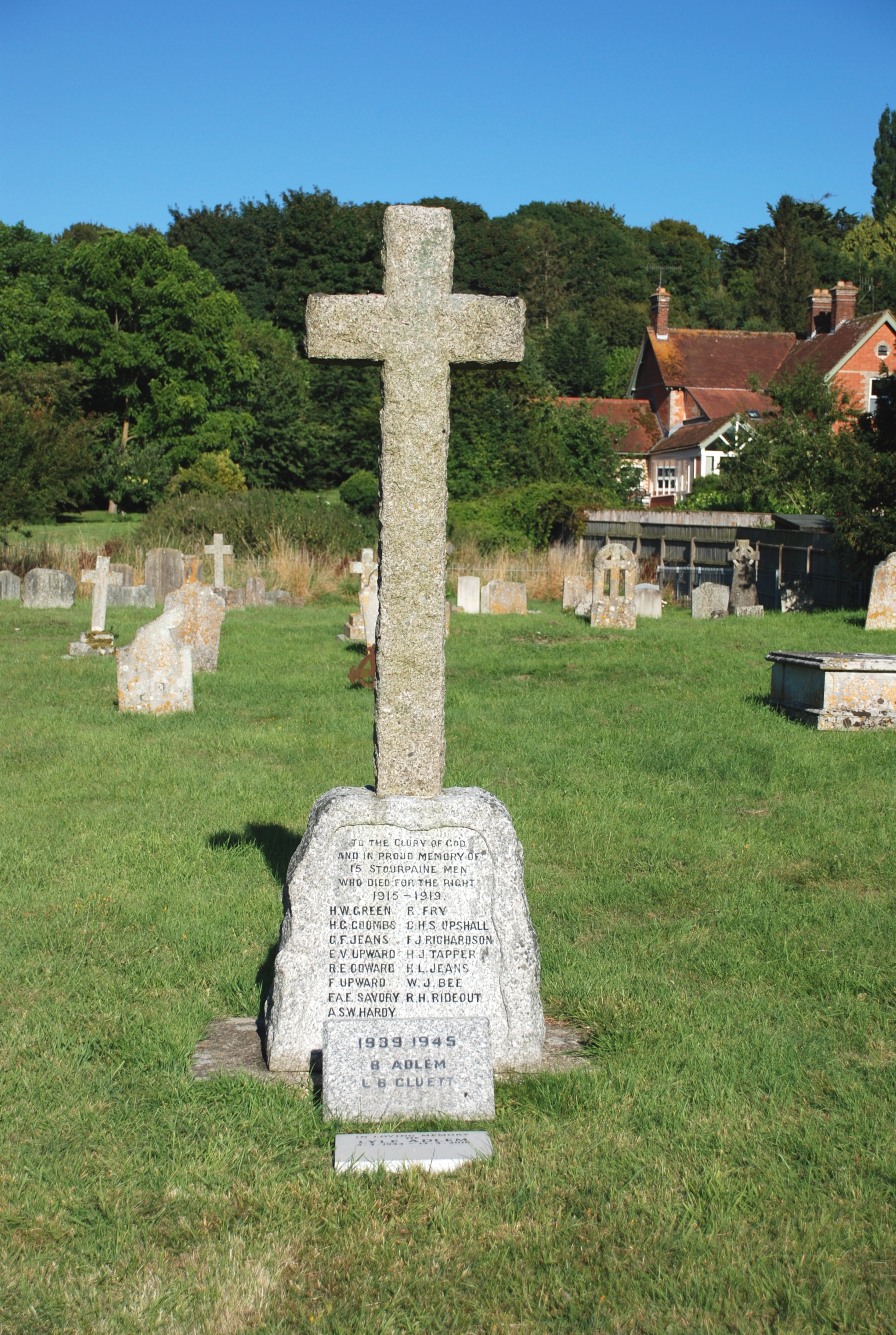 Stone cross Holy Trinity Churchyard, stone plaque for WW2 placed just in front on ground.