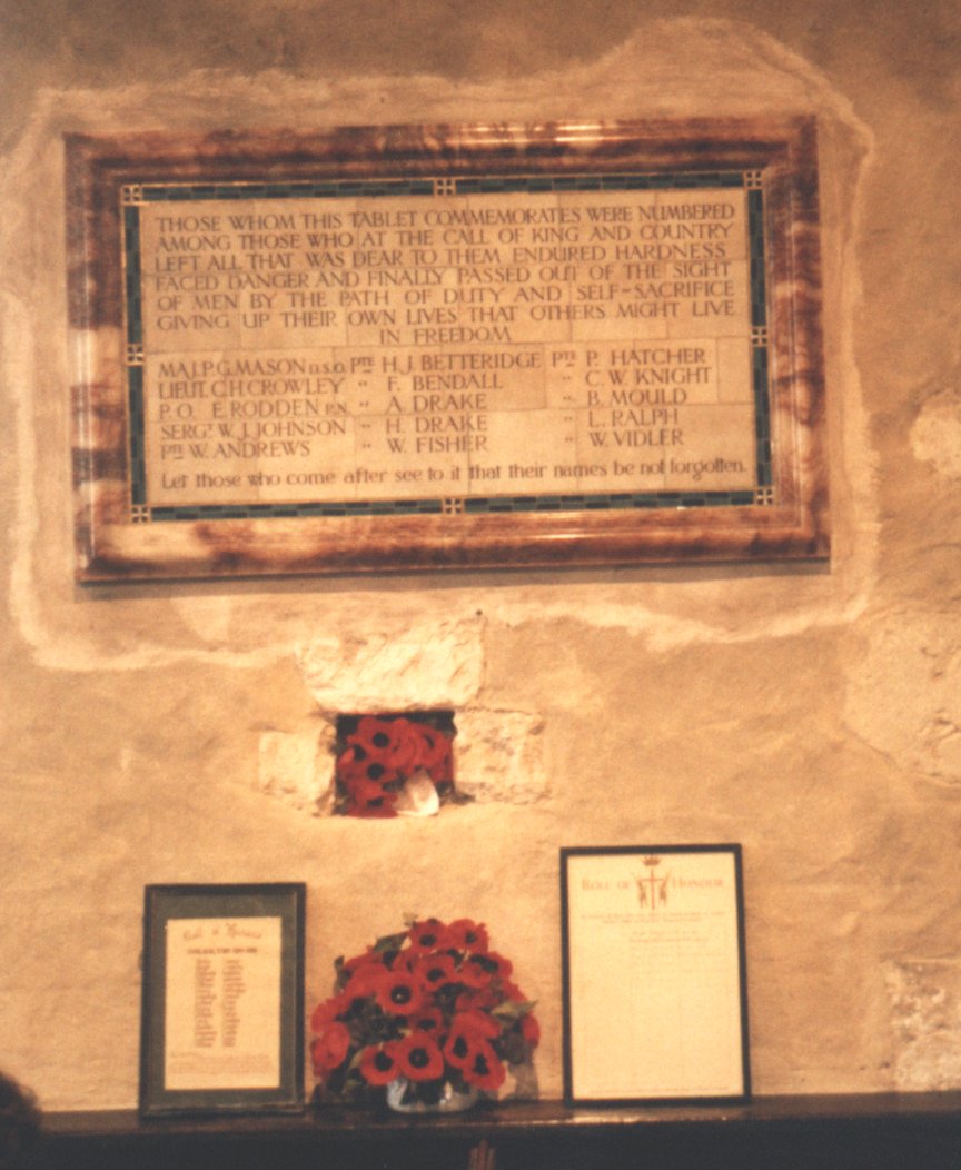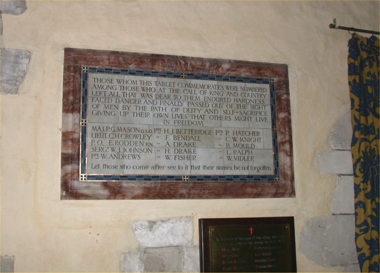 Marble tablet on wall on inside of church.